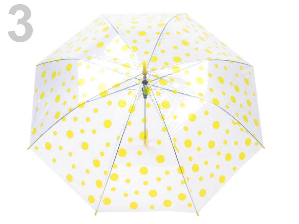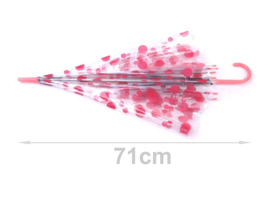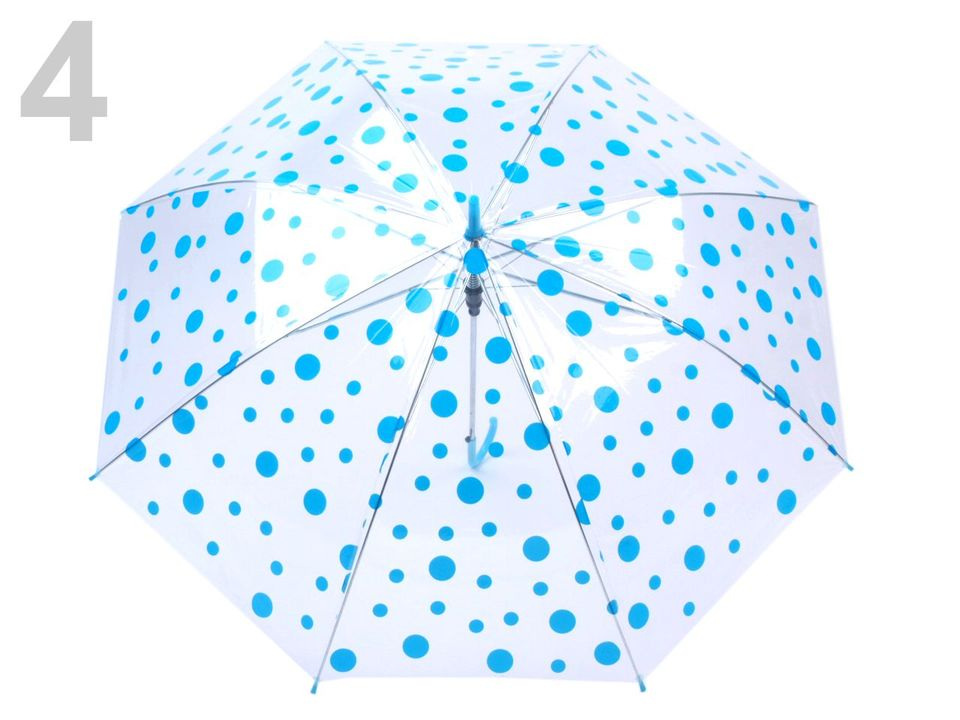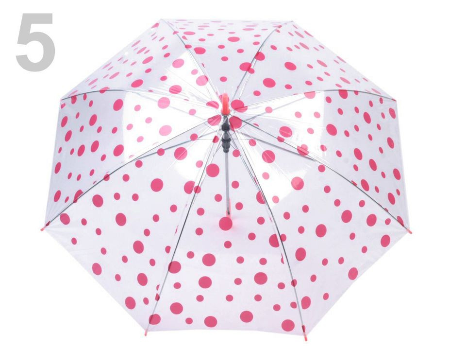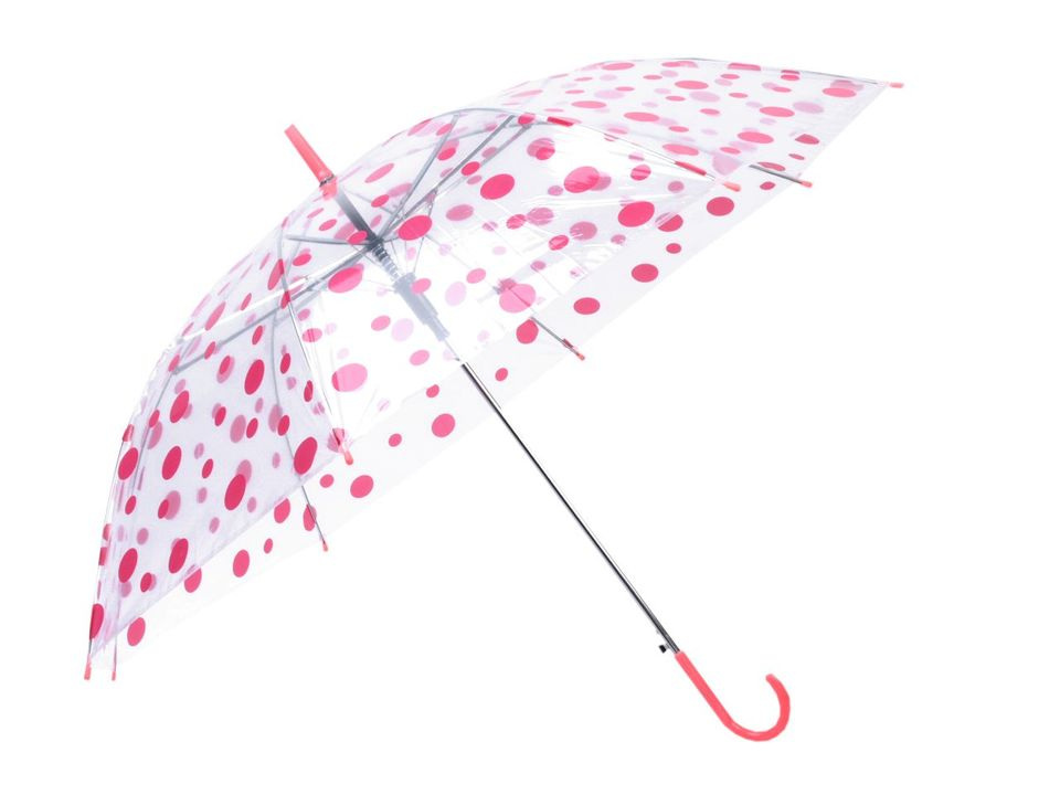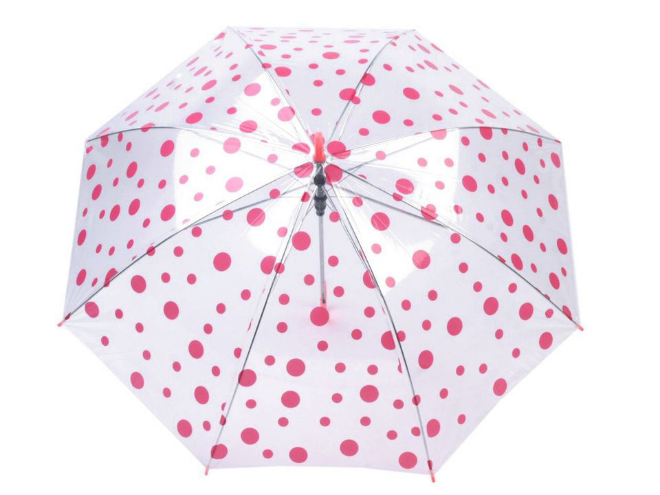 Hit mezi deštníky, který se opět vrací. Pevný průhledný potah deštníku s veselým potiskem puntíků vás doslova uchvátí. Můžete do něj směle schovat hlavu a přitom vidíte ven.