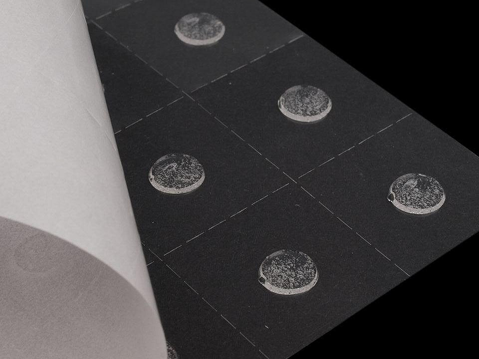 Samolepící 3D transparentní tečky průměru 10 mm jsou vysoce lepivé.