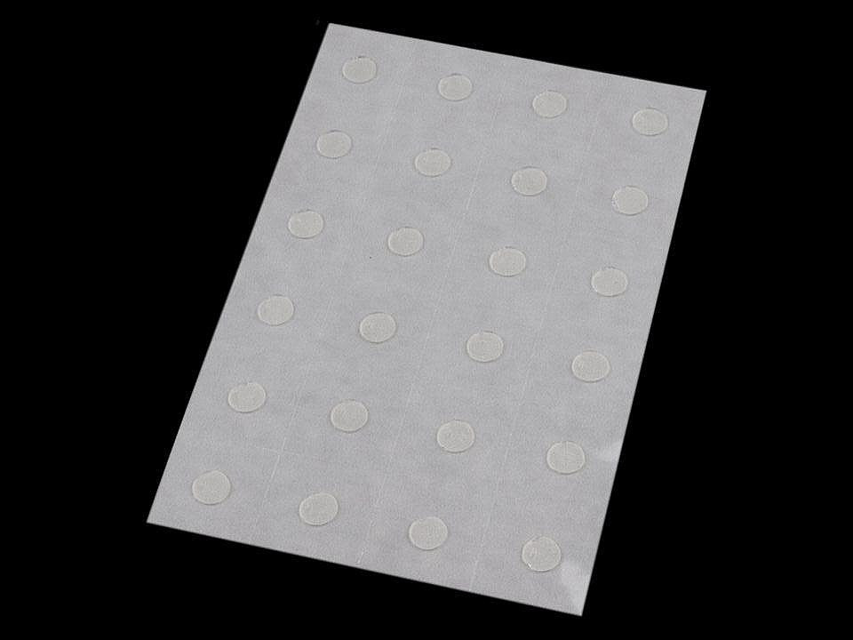 Tečky aplikujte na suchý, čistý a bezprašný povrch. Oddělte jednotlivě předseknutý čtverec krycích materiálů, odstraňte krycí papír a nalepte tečku na požadované místo. Pak odstraňte průhlednou fólii, která kryje tečku lepidla z druhé strany a přiložte materiál, který chcete nalepit.