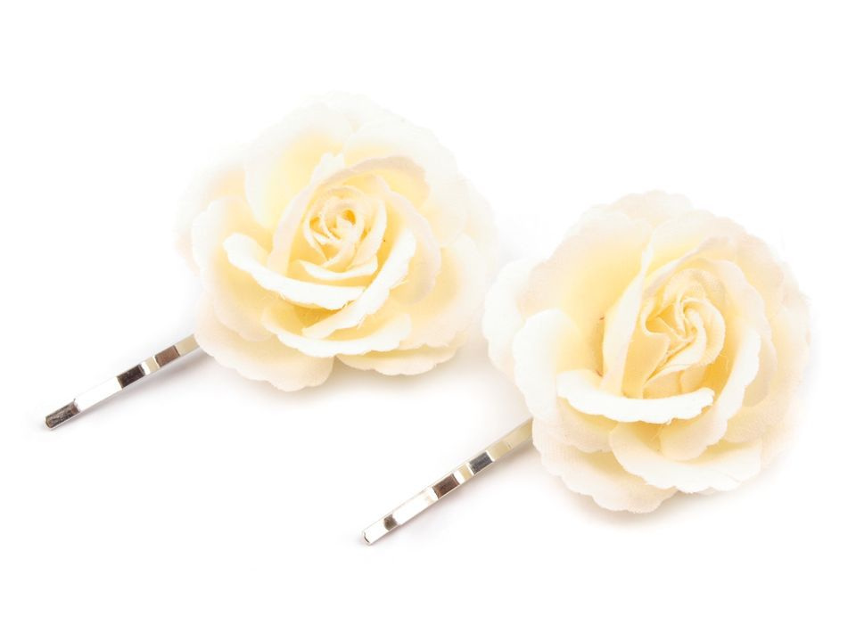 Růže jsou složené z drobných okvětních plátků s ozdobnými vlnkovými okraji. Ke středu se rovnoměrně sbíhají do tvaru spirály, věrně tím napodobují skutečný tvar růže. Vašemu účesu propůjčí nezapomenutelný romantický vzhled.