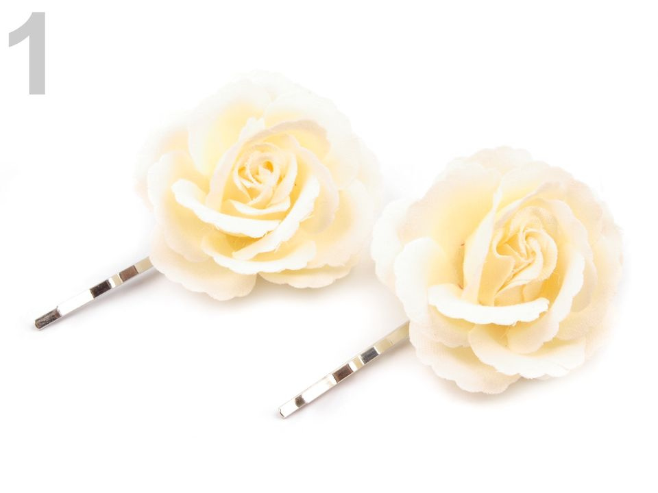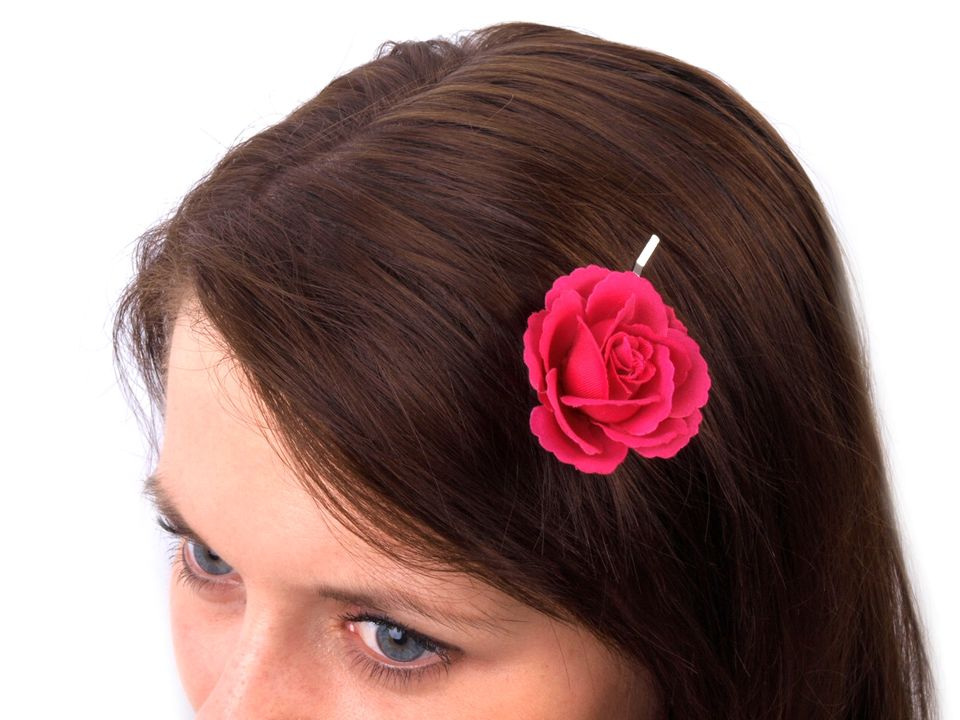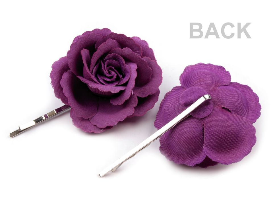 Textilní sponky s květem růže o průměru 4,5 cm. Výška květu je 2,5 cm.