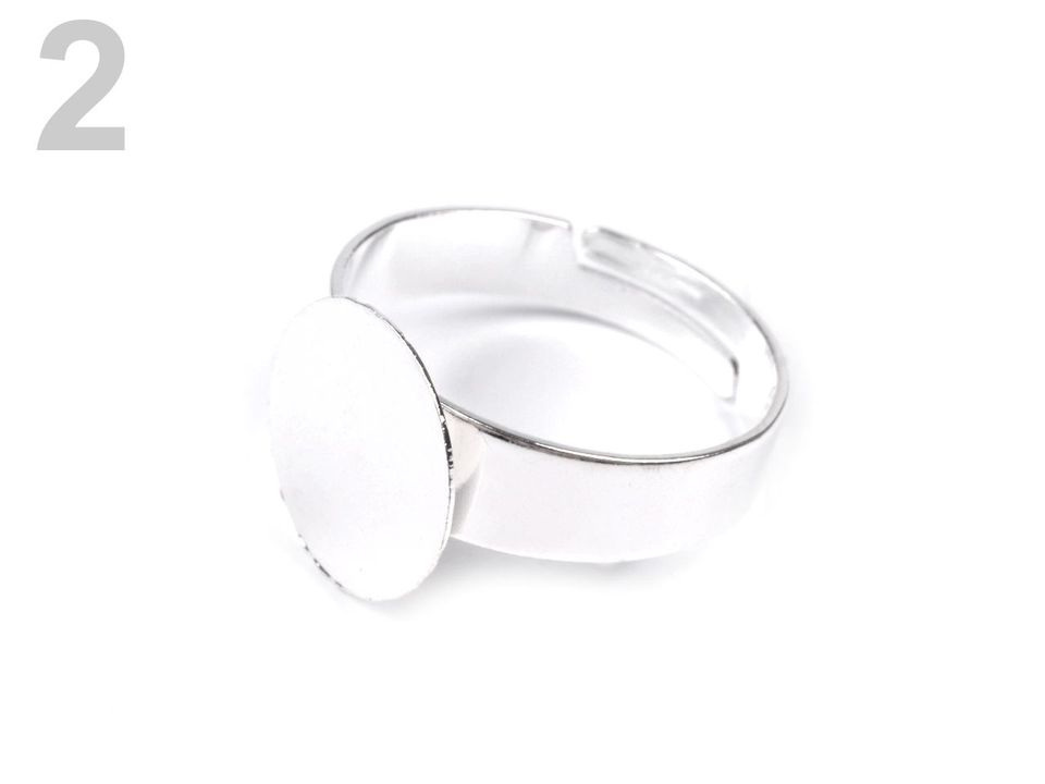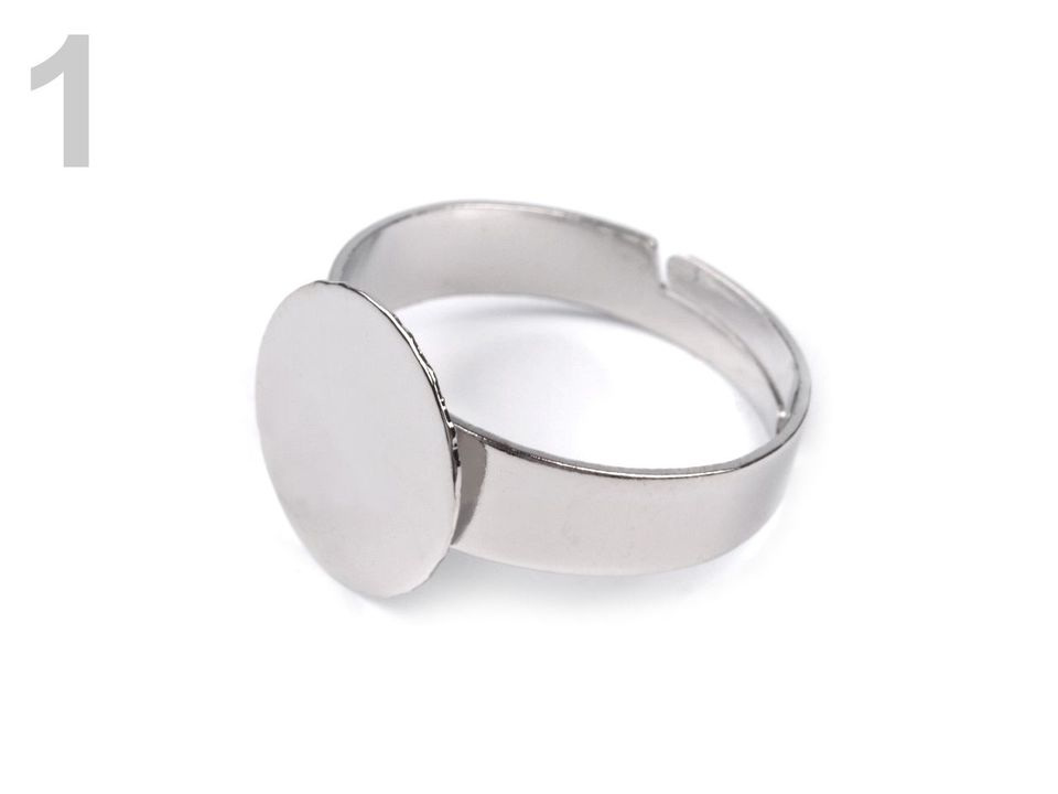 Rovná plocha je vhodná k nalepení oboustranné fólie, nebo bižuterního lepidla. Vyberte si vhodný kabošon nebo knoflík z naší široké nabídky a nový nekonvenční prsten podle vašich představ je raz dva na světě.