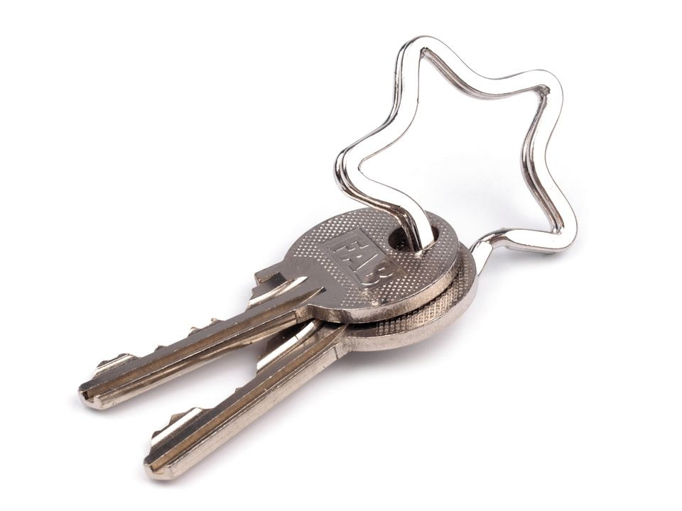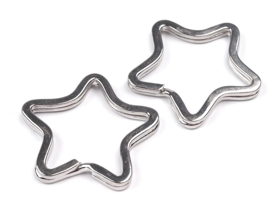 Kroužky na klíče ve tvaru pěticípé hvězdy jsou vyrobeny z pevného kovu. Z profilu jsou ploché. Můžete je použít nejen na klíče, ale také k výrobě různých přívěsků na kabelku i tašku.