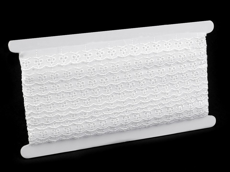 Šíře výšivky je 13 mm, celková šíře madeiry je 20 mm. Dodáváme v návinu po 13 m.