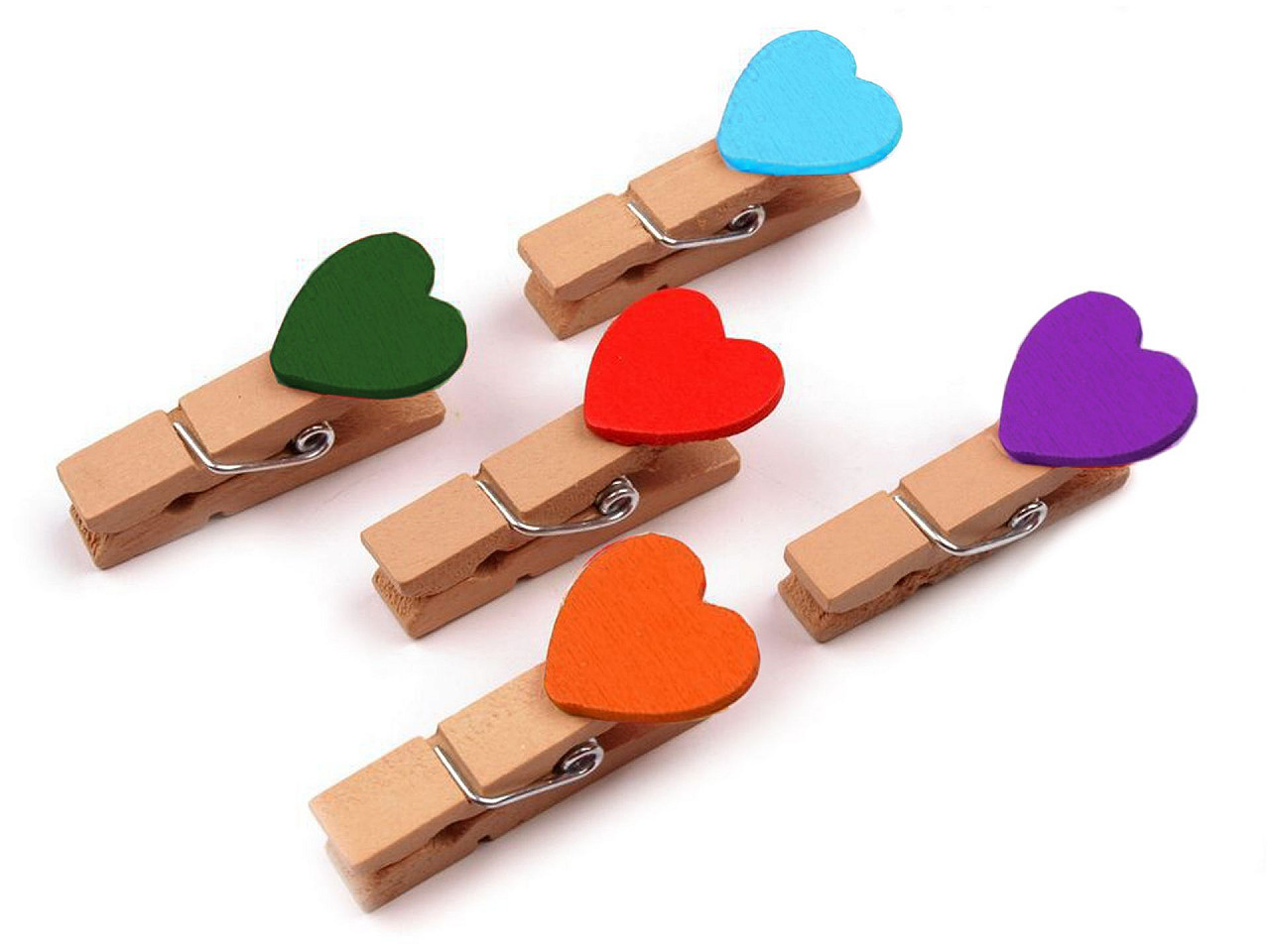 Dřevěná dekorace se srdíčky v pestrých barvách a kolíčkem se zalíbí především dětem a potěší i zamilované.