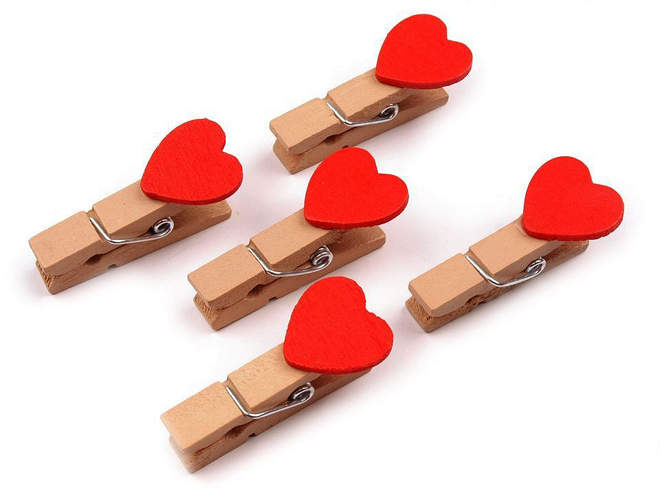 Balení obsahuje: 10 ks kolíčků se srdíčkem, šňůrku o délce cca 100 cm