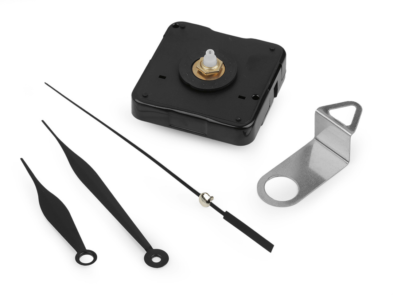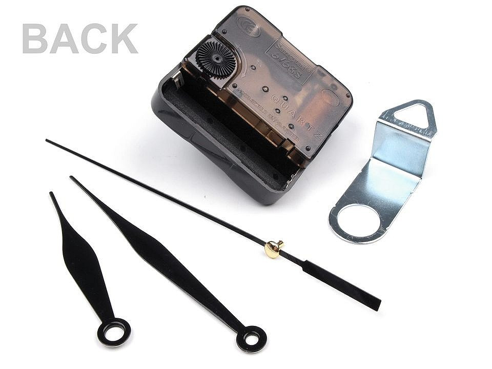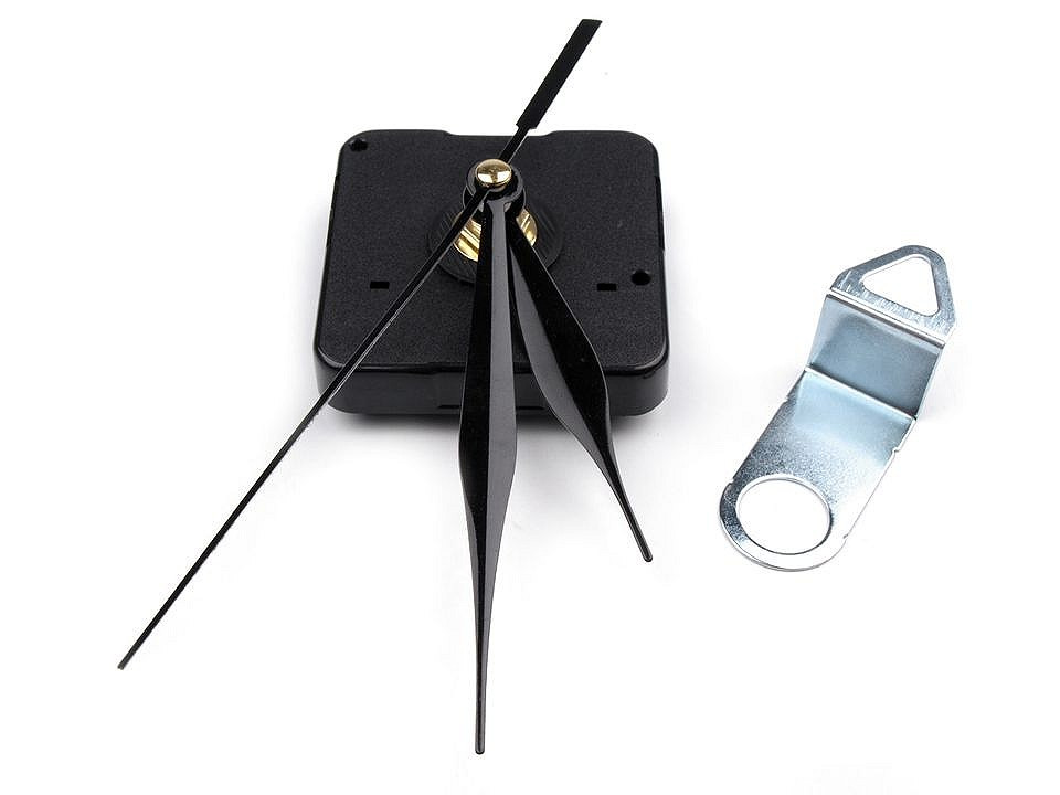 3 hodinové ručičky (136 mm, 96 mm, 67 mm), strojek, šroubek s matičkou a dvěmi podložkami a závěs.