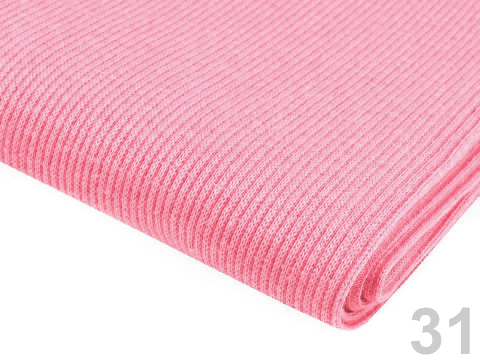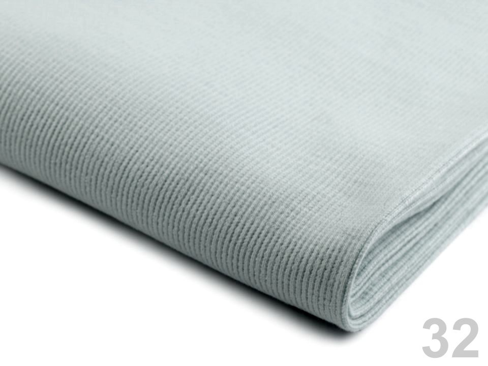 Jemně žebrovaný elastický úplet je dostatečně pružný a zároveň i příjemný na omak. Své využití najde především při šití konfekce. Používá se na výrobu triček, roláků, legín aj. Je vhodný také na nastavení pásu těhotenských kalhot či sukní.