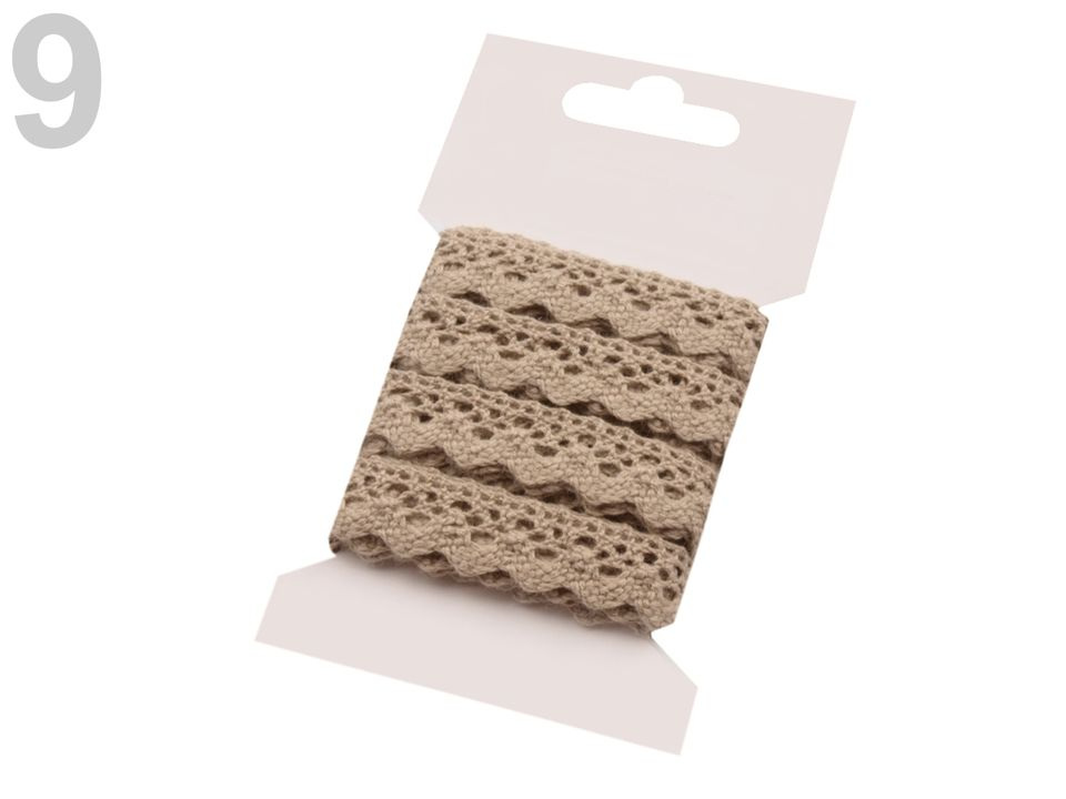 Bavlněná paličkovaná krajka působí romantickým dojmem. Z jedné strany je zakončena jemnými obloučky.