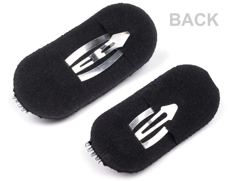 Spona pukačka je shora opatřena molitanovým polštářkem. Na něm je přes celou délku připevněný pruh s plastovými očky - podobný suchému zipu. Ale nemusíte se bát, vlasy pěkně zachytí na místě, ale nezamotá jako suchý zip. Sponka jde z účesu pohodlně a bez bolesti sundat.