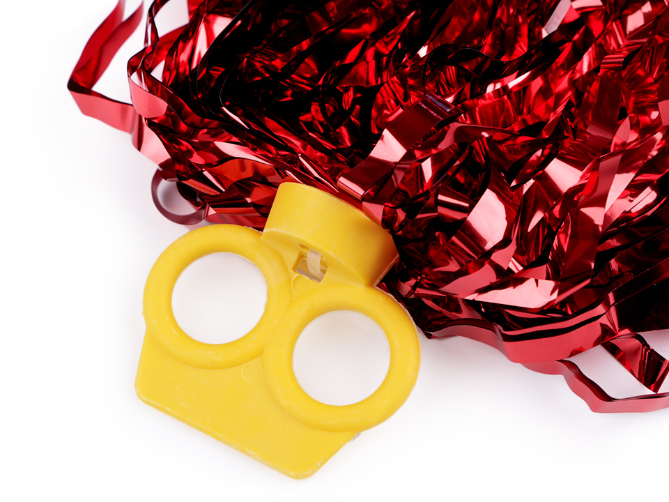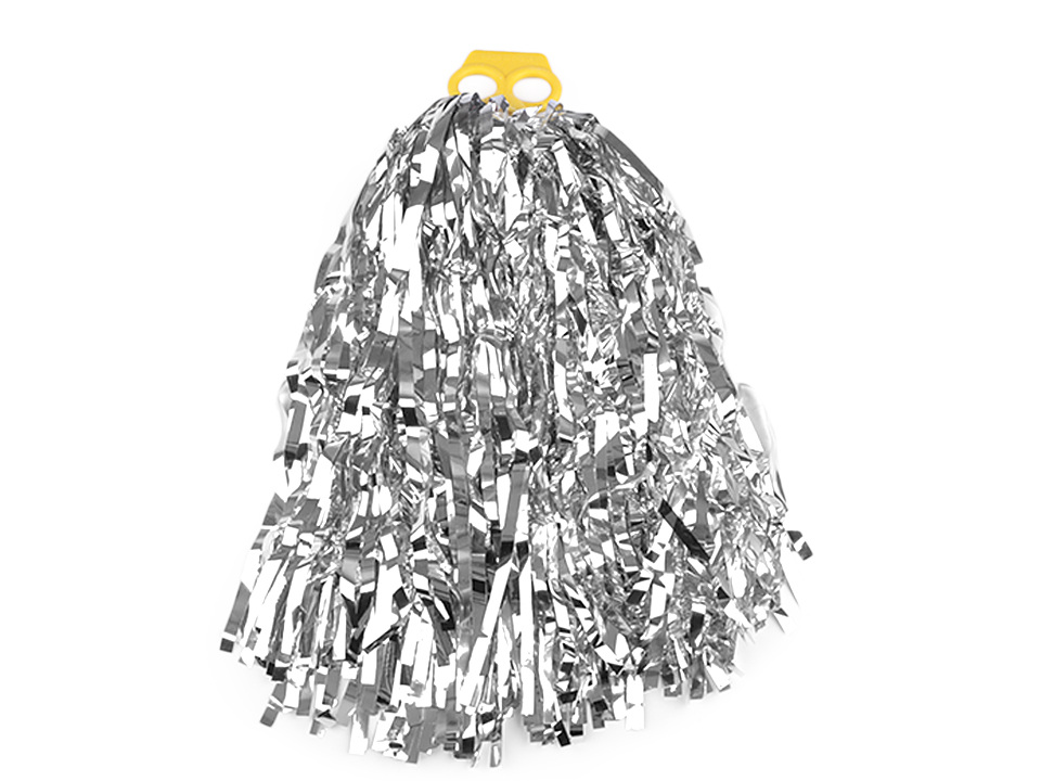 Pompon jsou metalické třásně různé délky vyrobené z hladké kovové fólie. Součástí je plastový úchyt pro dva prsty.