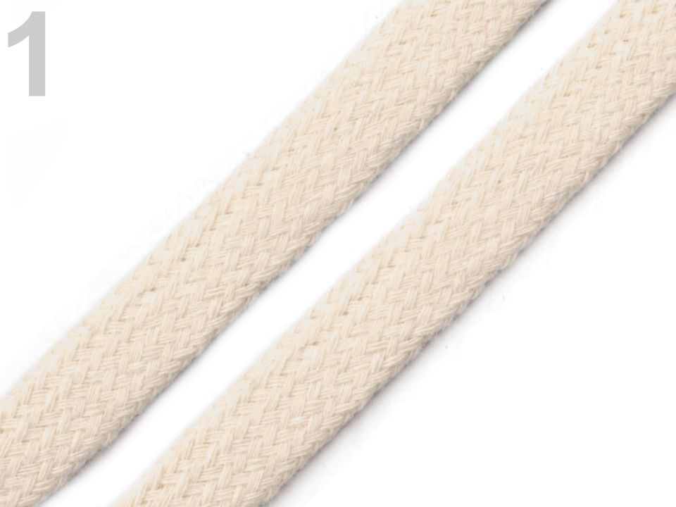 Přírodní plochá šnůra ze 100% bavlny je vhodná pro výrobu konfekce.