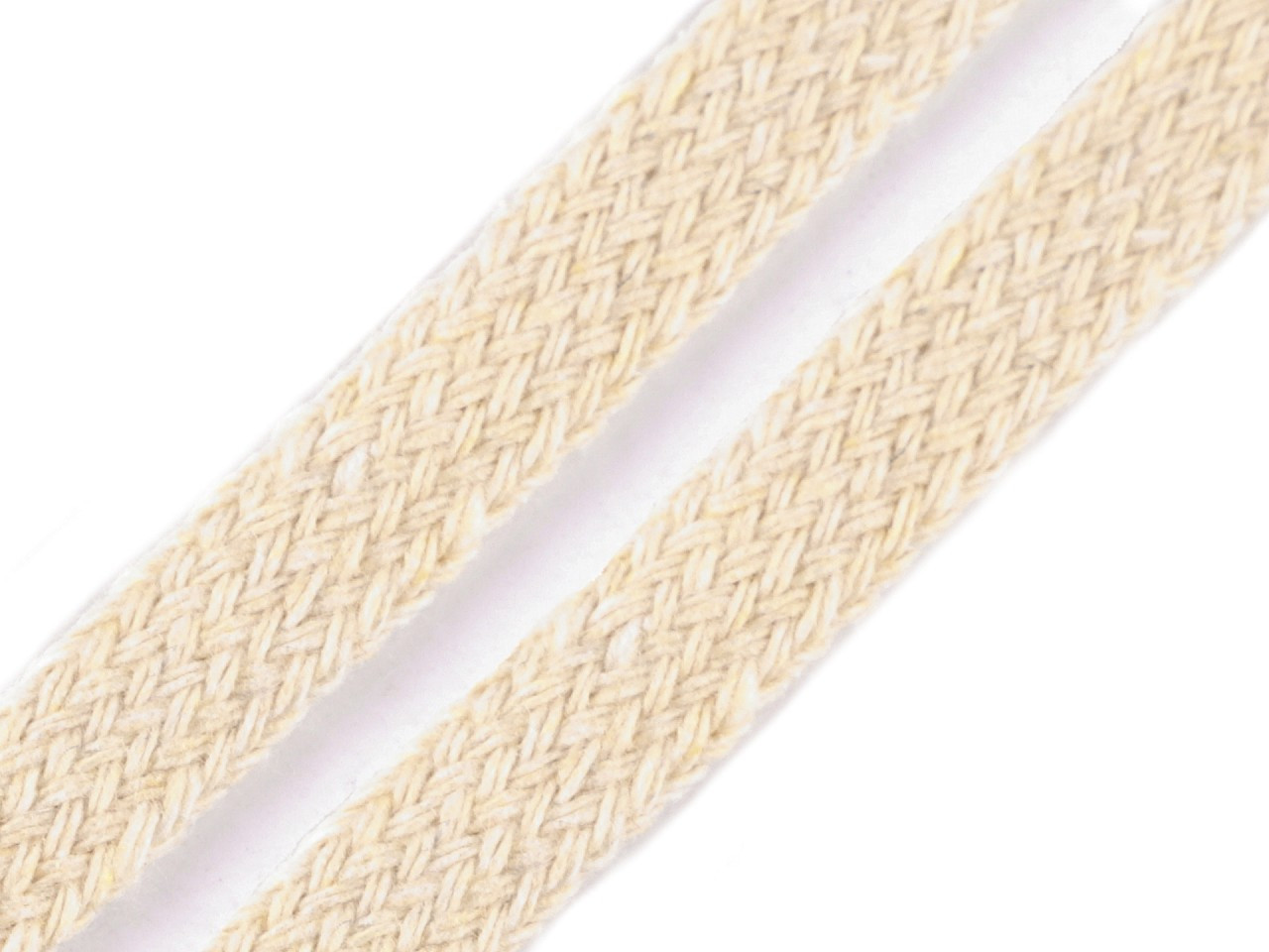 Přírodní plochá šnůra ze 100% bavlny je vhodná pro výrobu konfekce. Použijete ji například do tunýlku mikin, tepláků, triček atd. Je vhodná i na tvorbu dekorací.