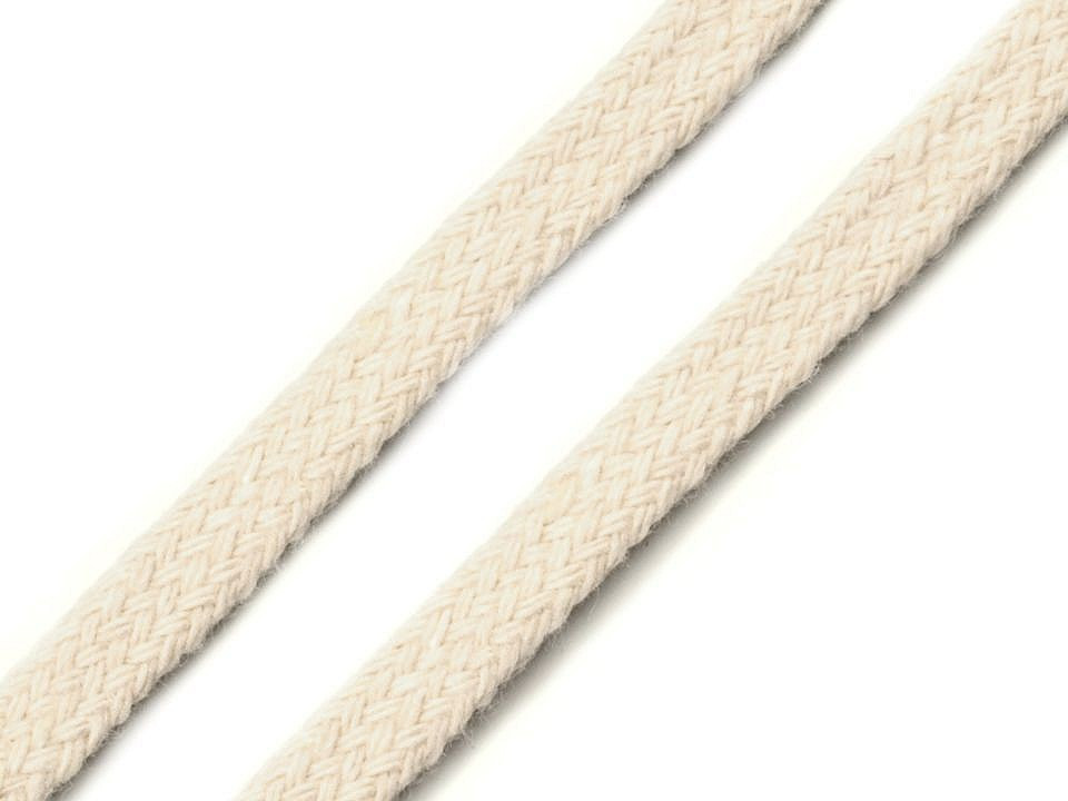 Přírodní plochá šnůra ze 100% bavlny je vhodná pro výrobu konfekce.