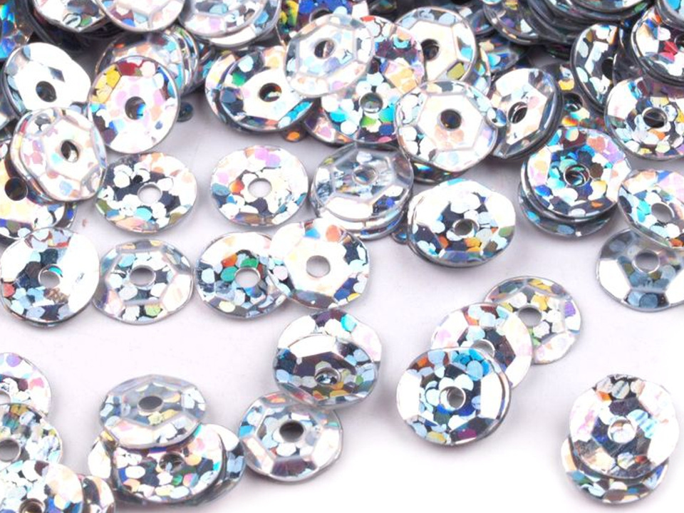 Lomené flitry se díky hologramové úpravě krásně třpytí.