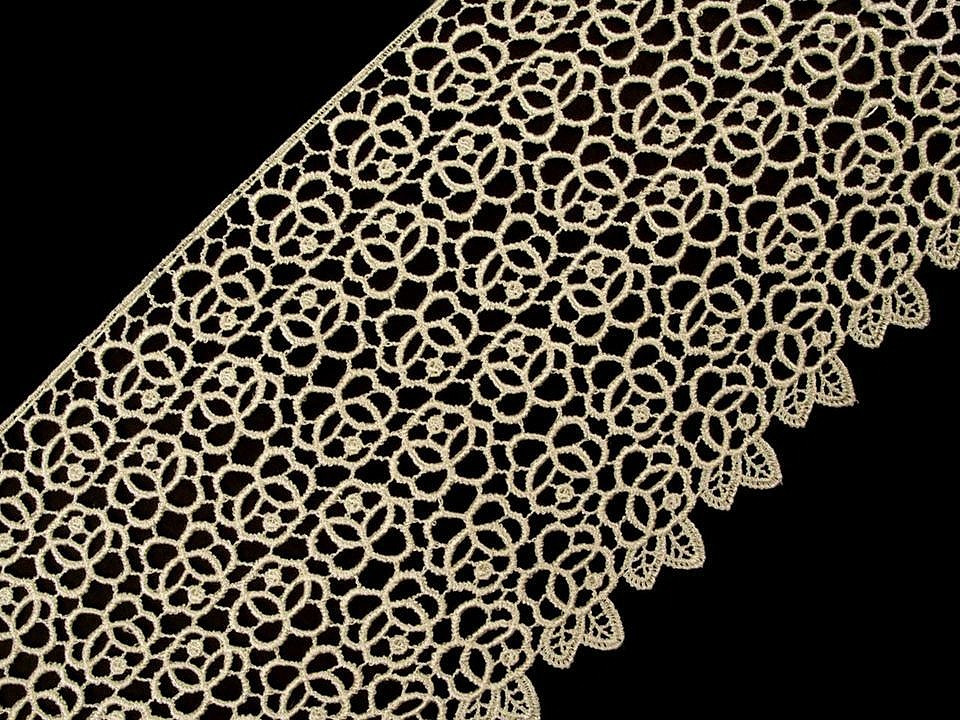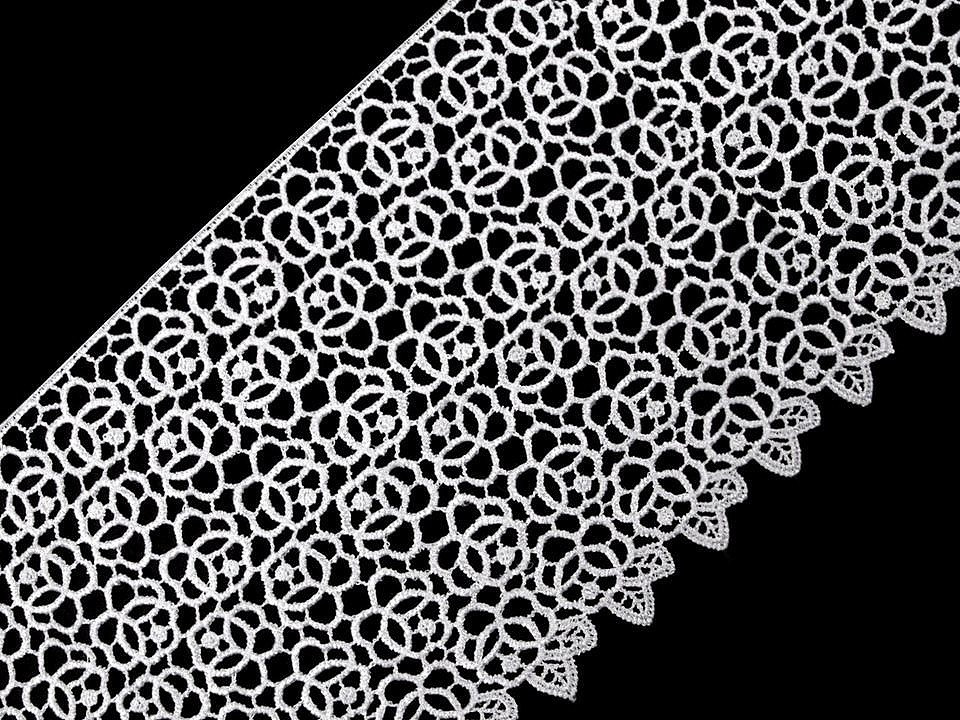 Použití: Krajku využijete k dekoraci různých bytových doplňků, například závěsů, deček a polštářů. Oživíte s ní i jednobarevné ubrusy, stačí ji jen nastříhat do požadované délky v sudém počtu kusů (kvůli rozdílným okrajům) a symetricky našít do středové části nebo na lemy.