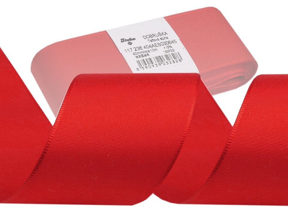 Kvalitní taftová stuha české výroby. Je vhodná pro dekorace , zdobení ,vázání balíčků nebo mašliček a ozdob. Povrch stuhy není tak hladký jako povrch saténové stuhy, barevný povrch je matný. Podniková norma fa Stuha povoluje na 10 metrových návinech dva odstřihy, které jsou k sobě slepené, tolerance u 10 m návinů je +/- 10 cm.
