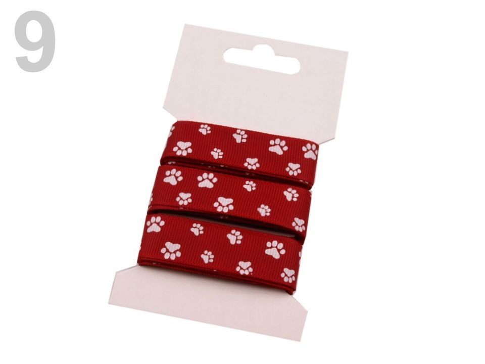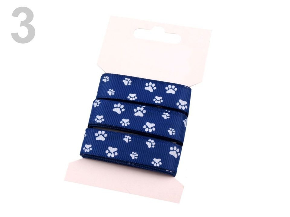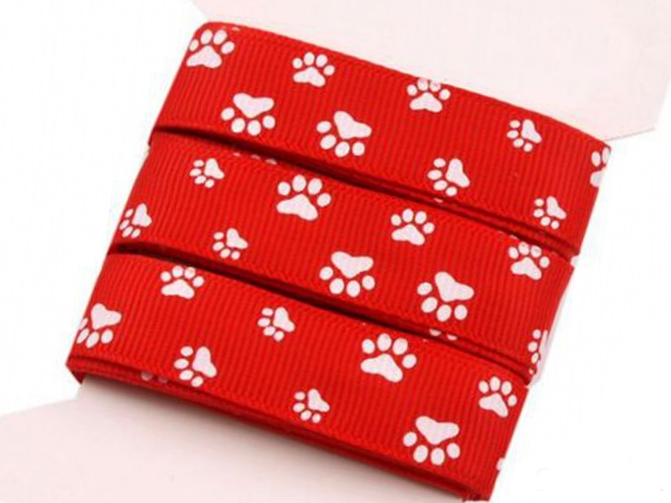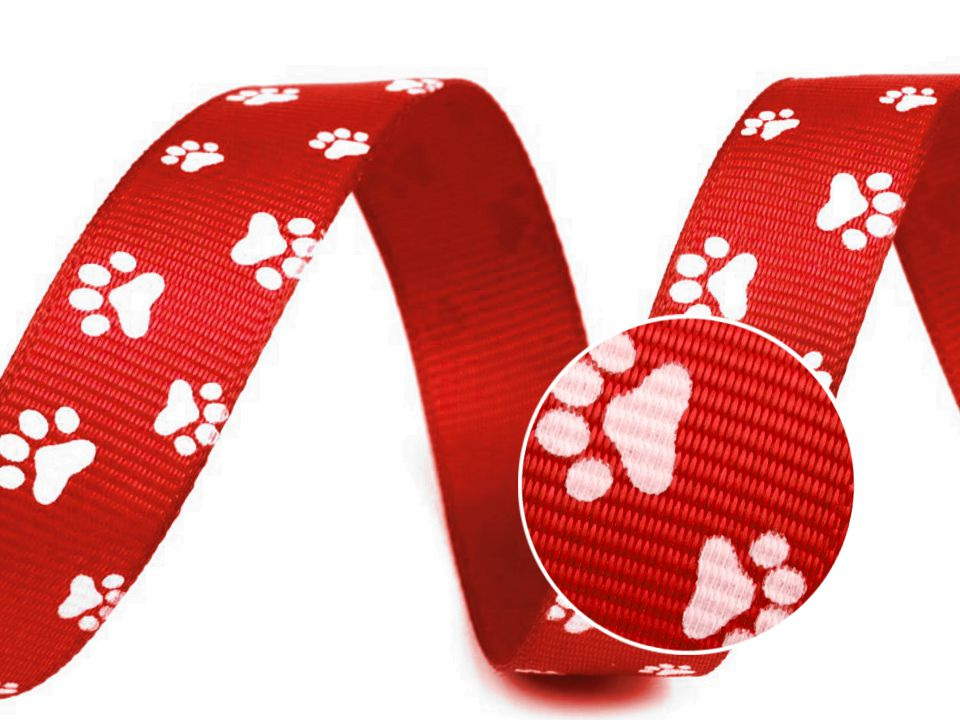 Rypsová stuha s jemným žebrováním je ozdobena barevným potiskem znázorňujícím otisky zvířecích tlapek. Potisk je kvalitní a neodírá se.