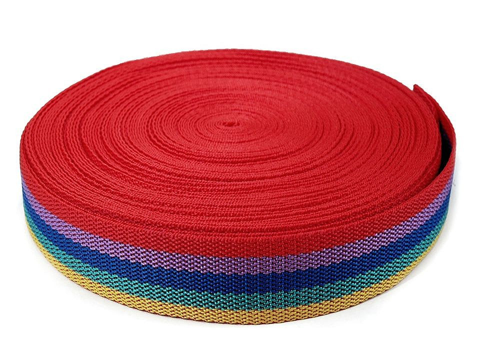 Používá se na batohy a tašky, lemování textilních výrobků, výplety čalouněného nábytku apod. Nosnost popruhu je přibližně 800 kg. Tloušťka popruhu je 1,10 mm.