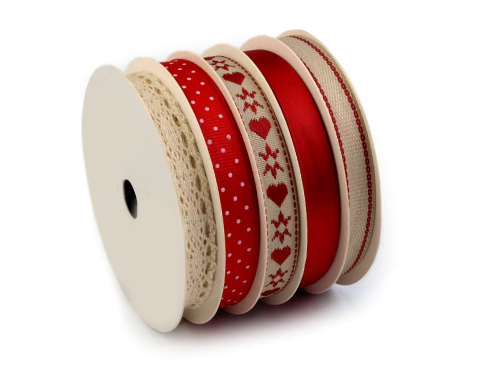 Namixovanou sadu stuh jistě oceníte. Najdete zde stuhy rypsové, atlasové, taftové aj. Jsou namotané na praktickém válečku.