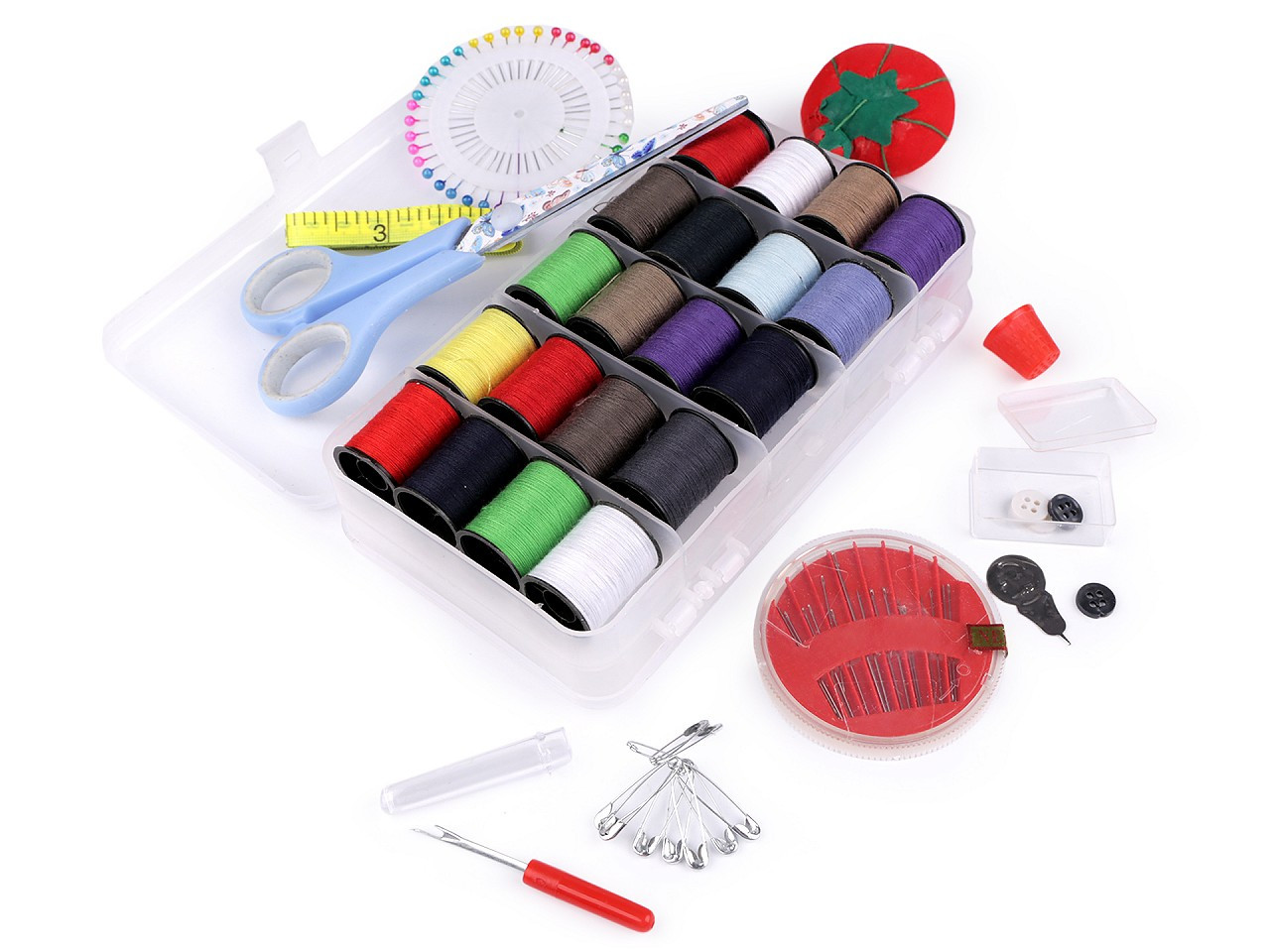 Praktická sada na šití obsahuje všechny základní věci, které potřebujete k šití nebo opravení vašeho oblečení. Budete mít všechno po ruce v šikovném oboustranném plastovém boxu.