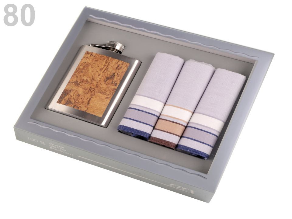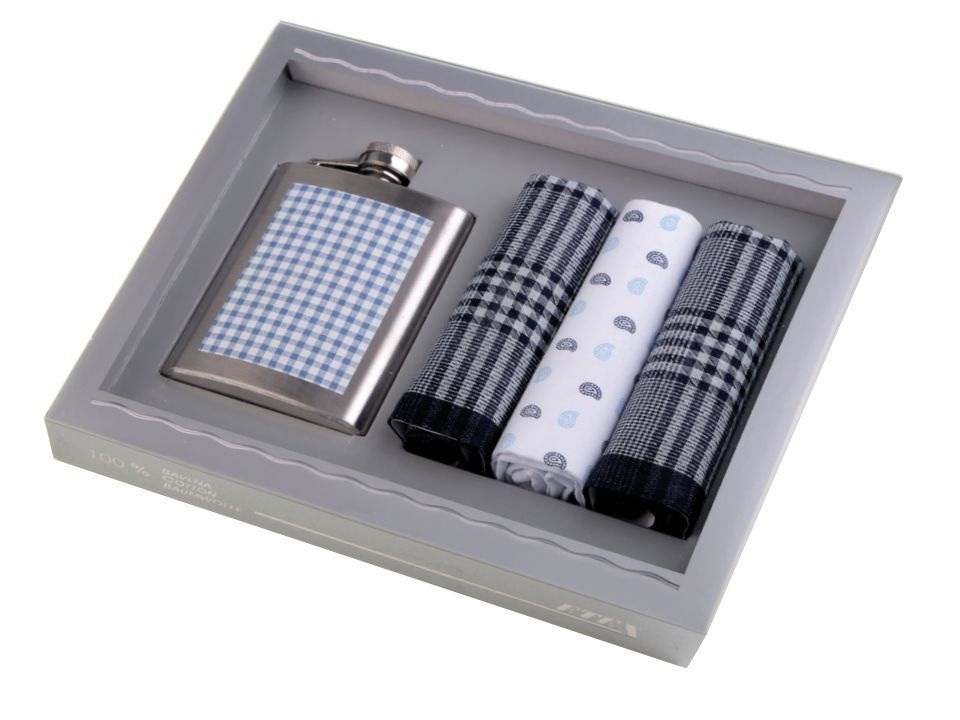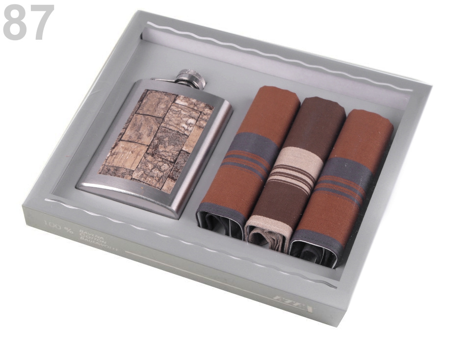Pánská dárková sada kapesníků s placatkou je univerzálním a praktickým dárkem, který určitě potěší každého muže. V sadě najdete tři kapesníky a jednu placatku.