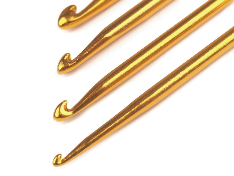 Oboustranný háček pro háčkování tenkých i silnějších přízí.