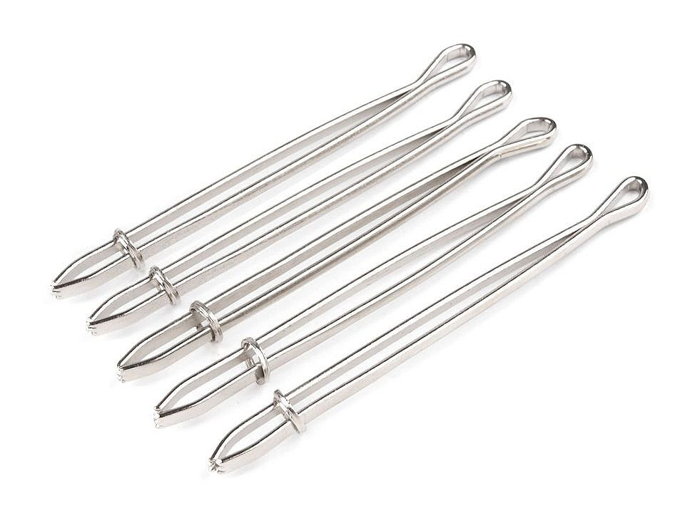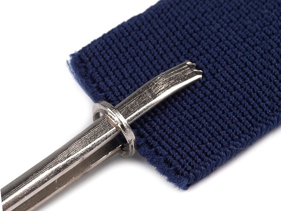 Kovový navlékač je šikovný pomocník, který vám usnadní práci při navlékání gumy. Připomíná pinzetu. Po rozevření navlékače uchyťte gumu do jeho konců (se zoubky) a zpevněte kovovým očkem, které je jeho součástí.