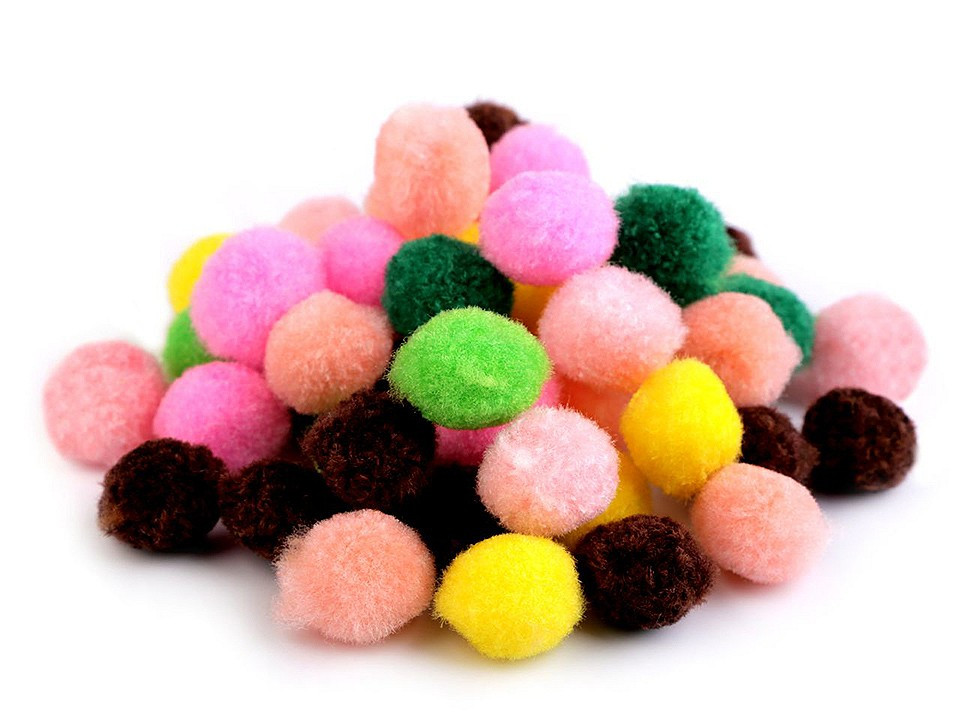 Použití: Bambulky jsou vhodné na výrobu náhrdelníků, náušnic nebo přívěsků na klíče a mobil. Můžete je také využít na originální ozdobení čepic, svetrů, šálů nebo kabelek.