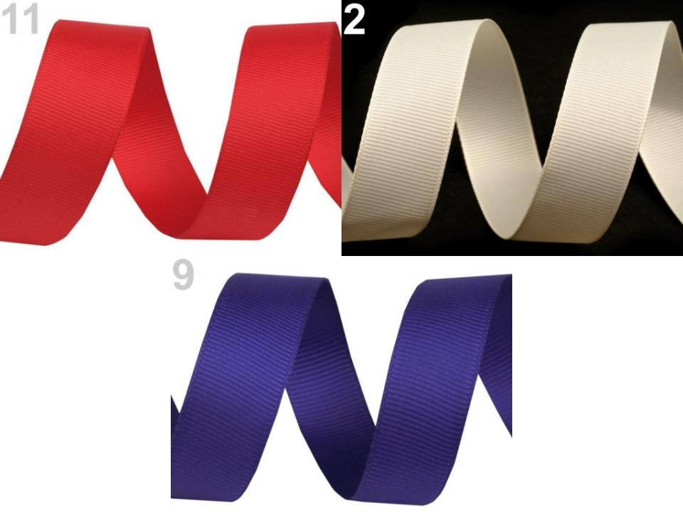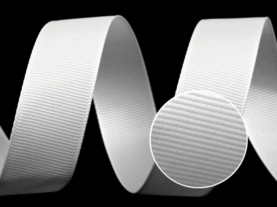Rypsová stuha je vyrobena ze 100 % polyesteru. Je pevná a má vysokou odolnost vůči opotřebení.