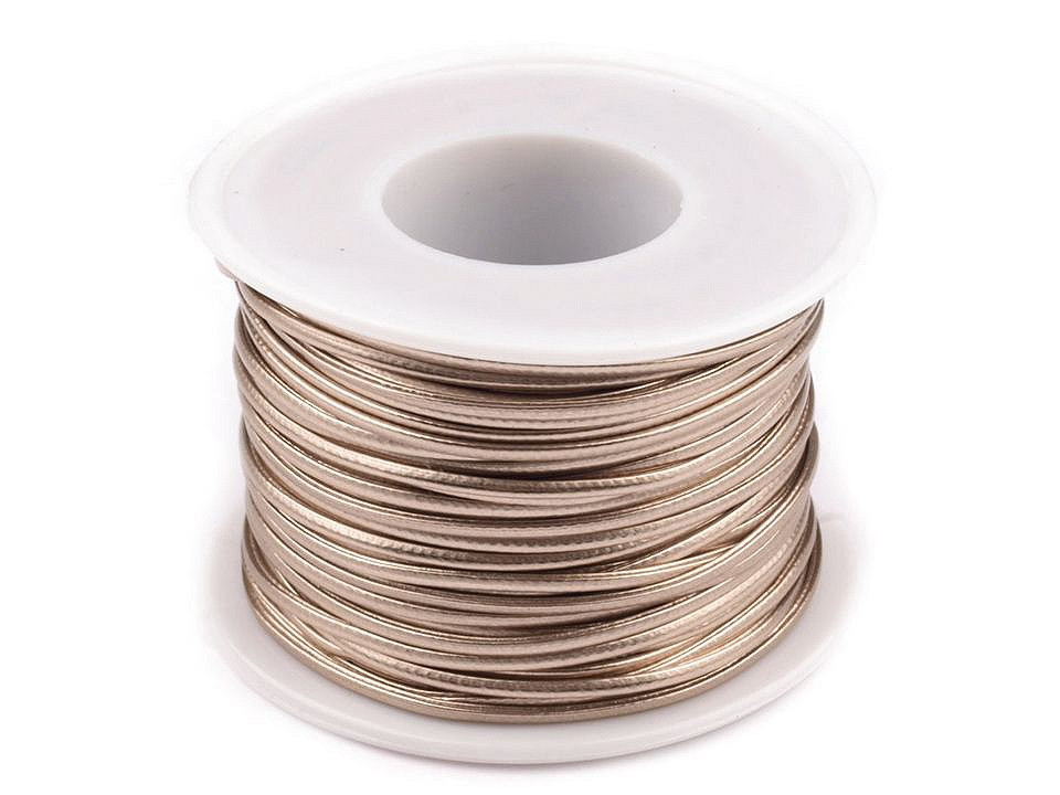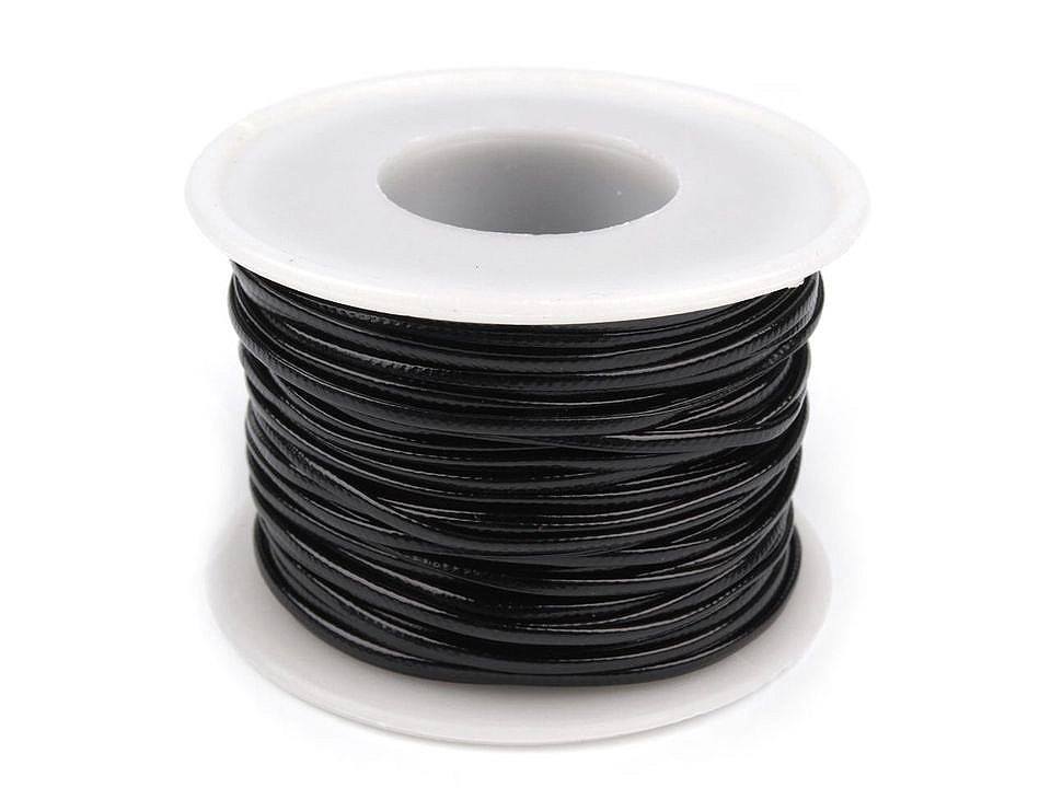 Oblíbený návlekový materiál z Eko kůže s lesklou povrchovou úpravou je luxusnější náhražkou voskovaných šňůrek. Má široké využití od jednoduchých po víceřadé náhrdelníky, je oblíbený na omotávané náramky typu chan luu a podobné splétané výrobky.