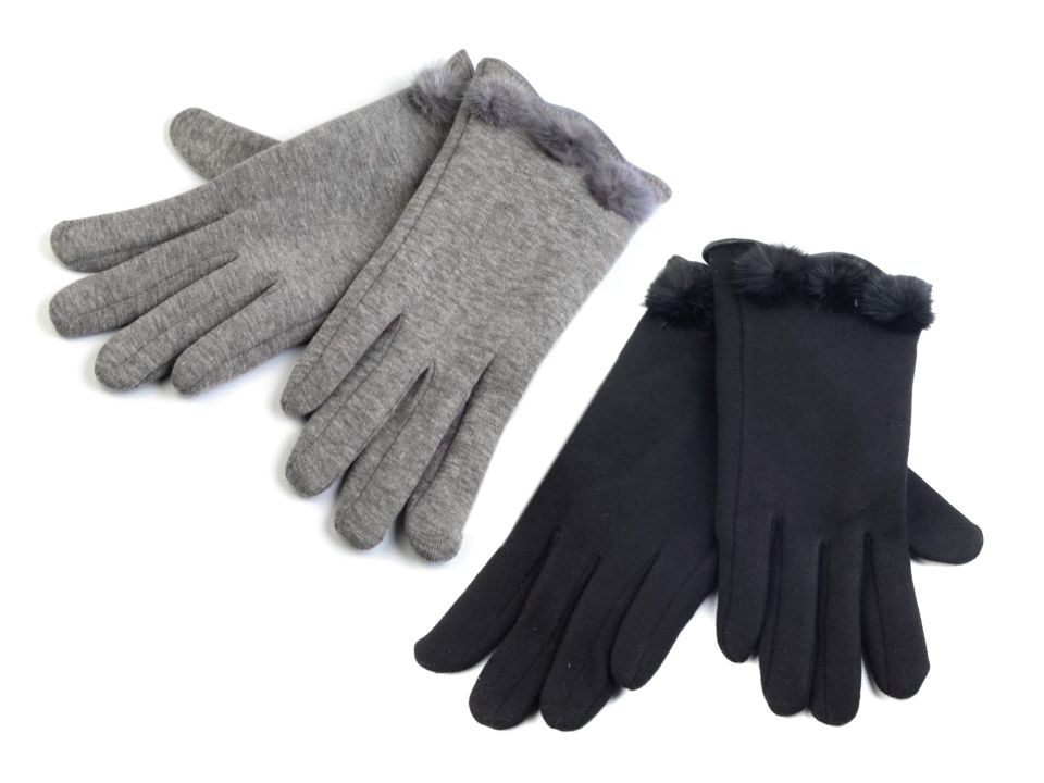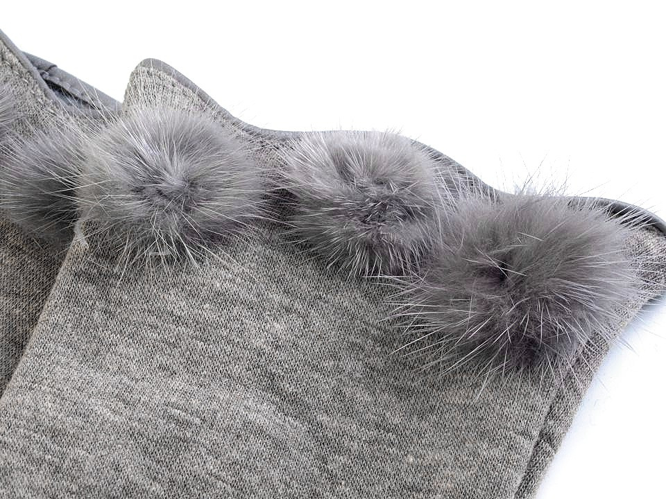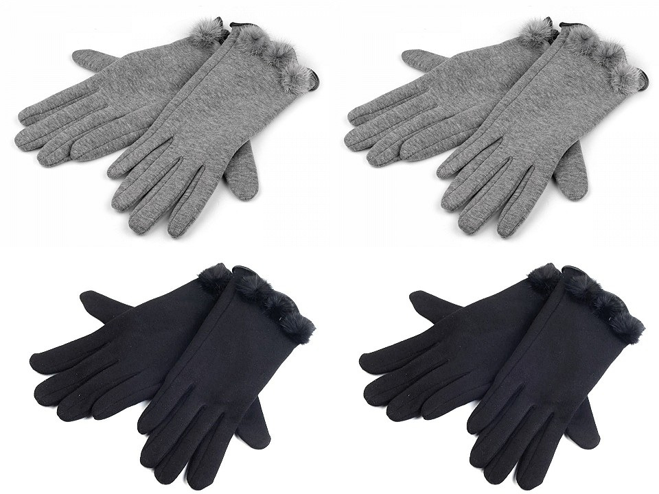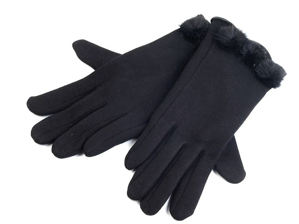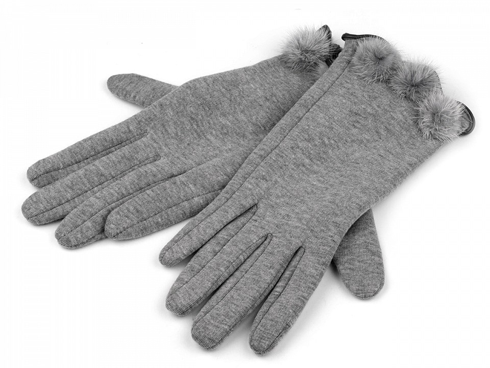 Elegantní dámské úpletové rukavice jsou zdobené třemi bambulkami z pravé kožešiny.