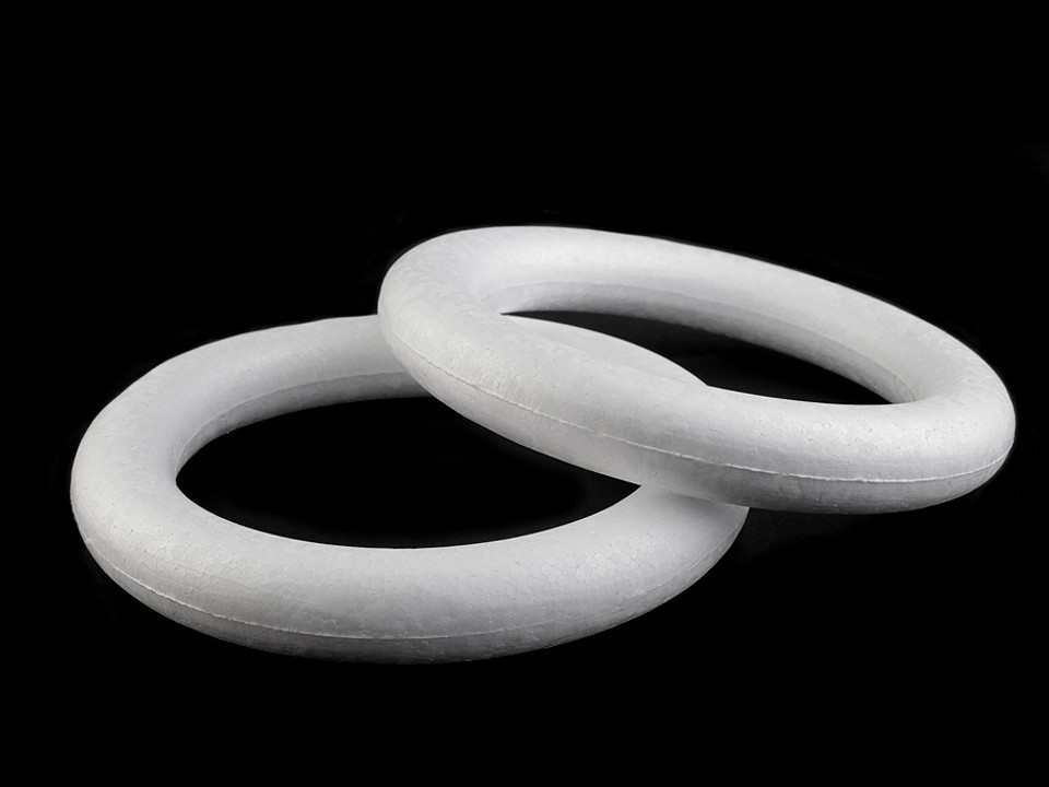 Polystyrenový věnec je vhodný k aranžování podzimních, vánočních či velikonočních dekorací. Můžete ho ozdobit stuhami nebo umělými rostlinami a plody.