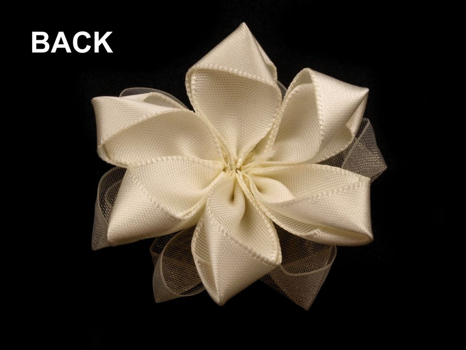 Použití: Květ je vhodný jako ozdoba na společenské šaty, halenky, trička, klobouky, čepice nebo čelenky do vlasů. Můžete ho také pomocí lepidla přilepit na brožový můstek a vytvořit tak zajímavý šperk.
