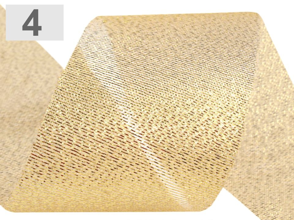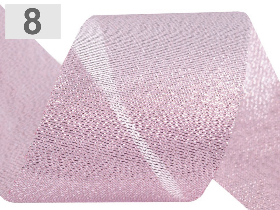 Luxusní stuha je protkaná třpytivým lurexem. Díky své pevnosti drží tvar a je lehce průsvitná.