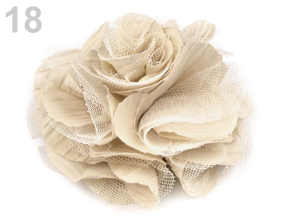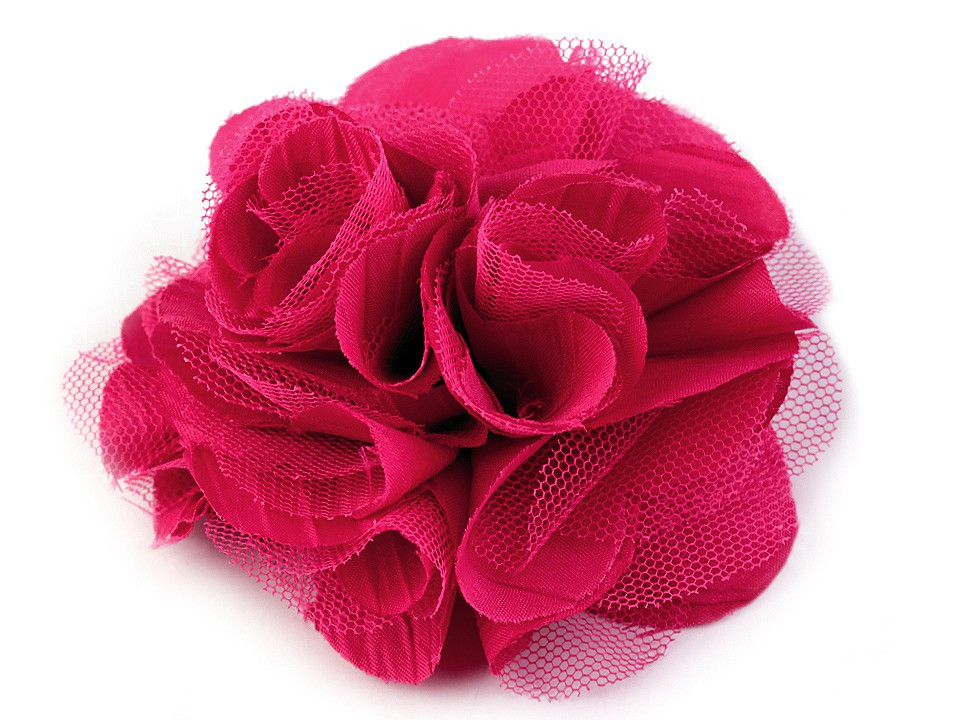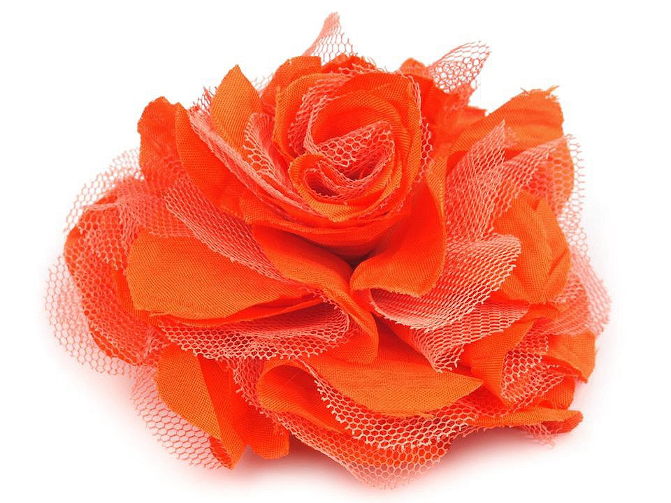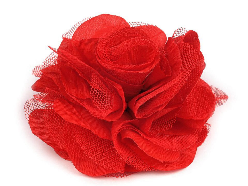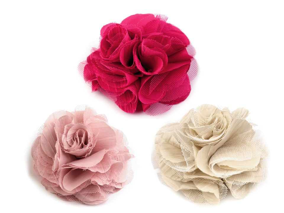 Brož ve tvaru růže je jemně nadýchaná a vyrobena z polyesteru. Ve spodní části má spínací špendlík a klips, takže ji můžete připevnit jak na oděv, tak do vlasů.