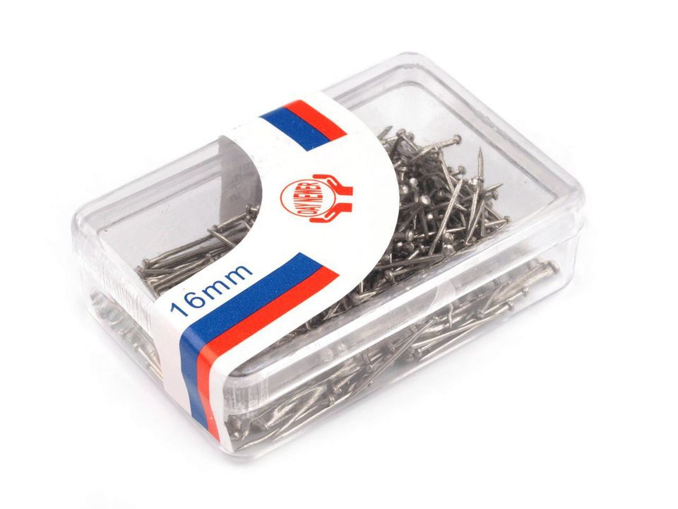V plastové krabičce, která váží 20 g, je přibližně 350 kusů. Průměr hlavičky je cca 1,50 mm.
