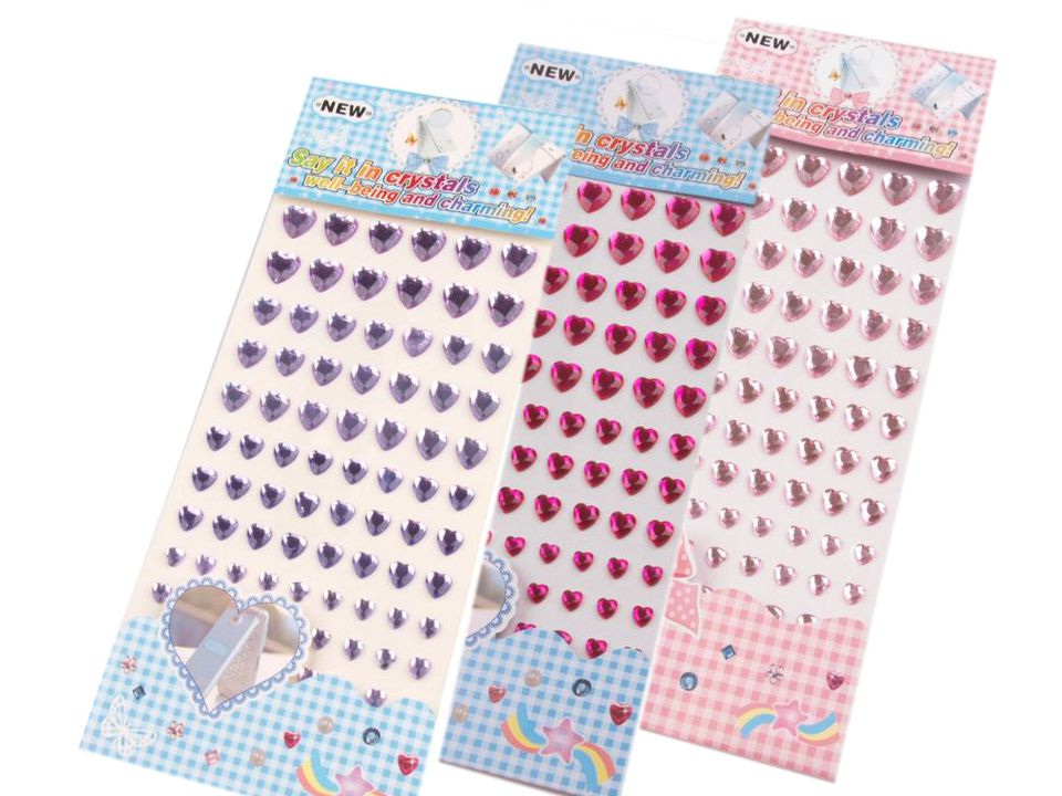 Srdíčka jsou broušená a díky tomu se působivě třpytí. Všechny jsou nalepené na jednom archu podkladové folie, ze které je stačí sejmout. Doporučujeme je lepit na suchý, hladký a pevný povrch.