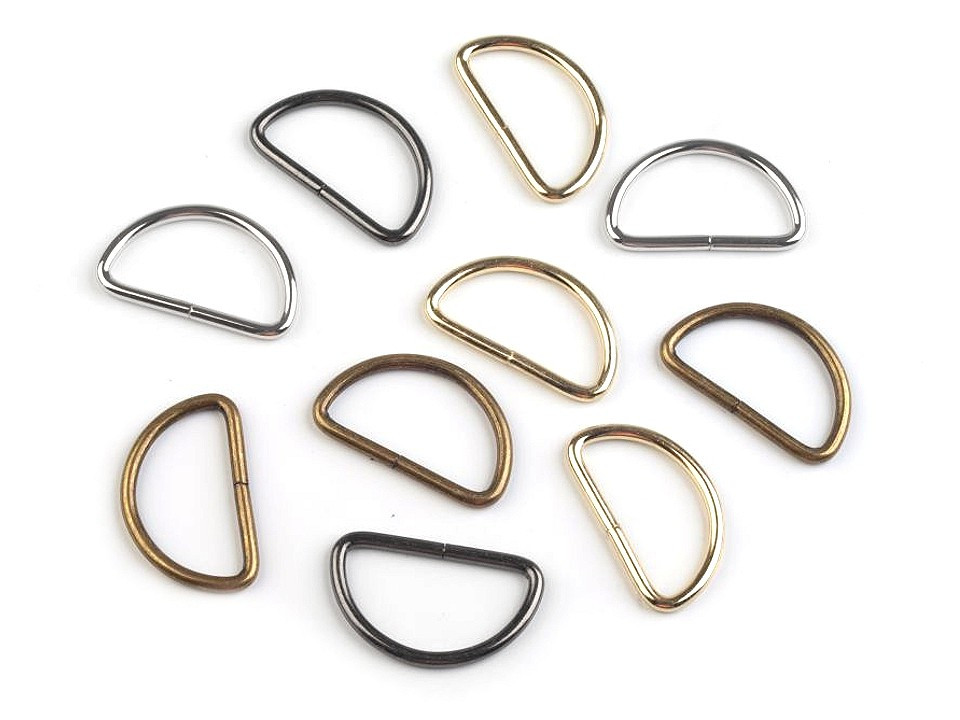Kovový polokroužek slouží k přichycení popruhů či řemenů ke sportovním taškám, batohům, aktovkám a kabelkám.