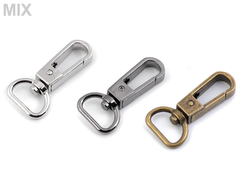 Otočná karabina je vyrobena z kvalitního kovu. Využijete ji k výrobě vodítek pro psy, klíčenek nebo k připevnění popruhů na tašky a kabelky.
