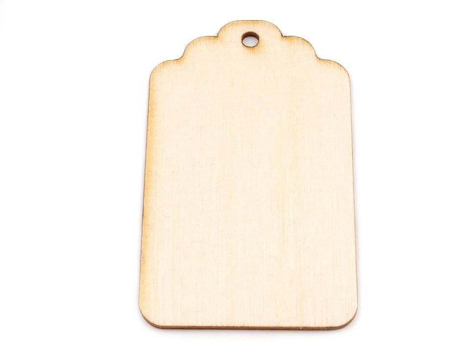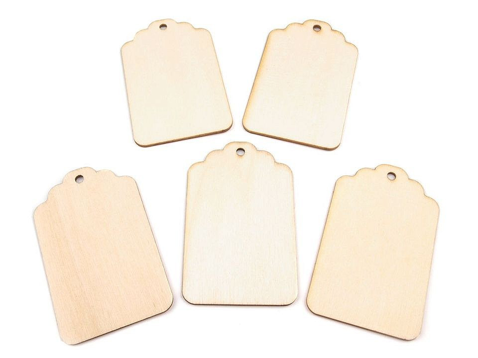 Dřevěný štítek má praktické i dekorativní využití. Je vhodný na malování a kreslení. Na jeho konci je výstupek s dírkou (Ø3 mm), kterou lze provléct šňůrku nebo stuhu. Štítky jsou vyřezávané laserem a díky tomu jsou jejich okraje perfektně začištěné.