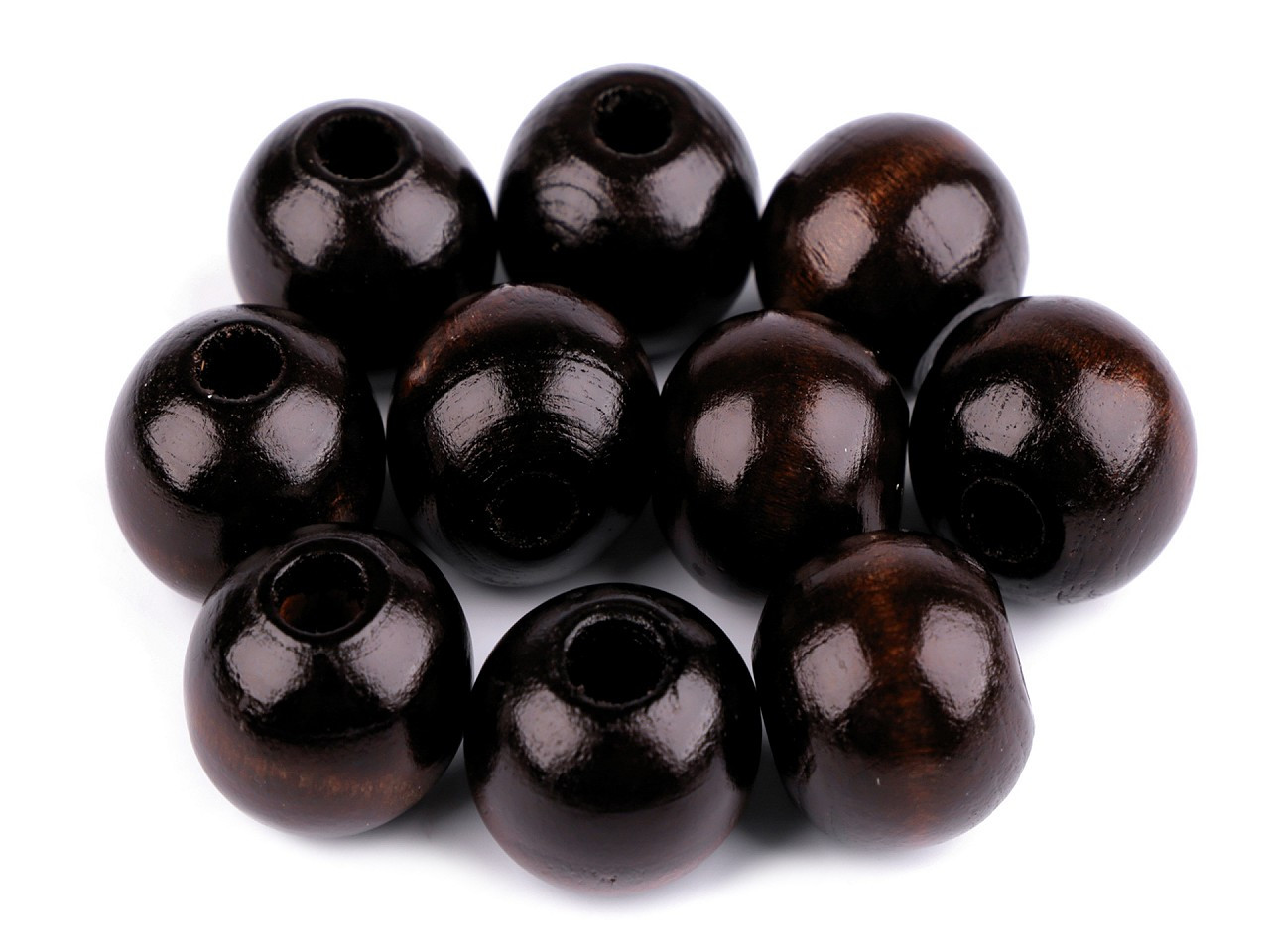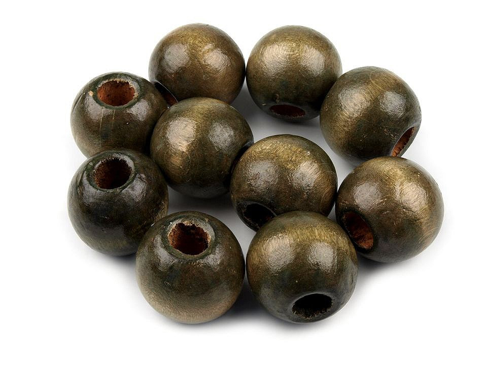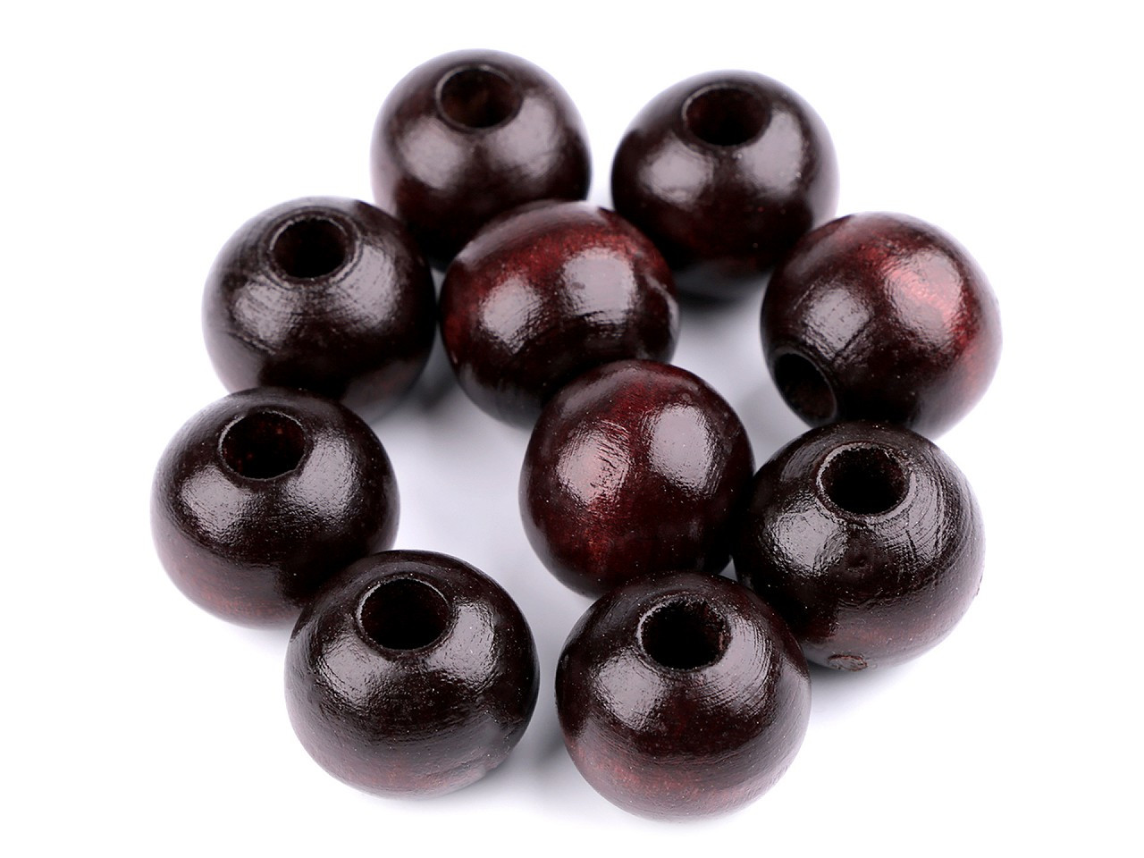 Velké dřevěné korálky využijete k výrobě uch na tašky. Jsou povrchově lakované.