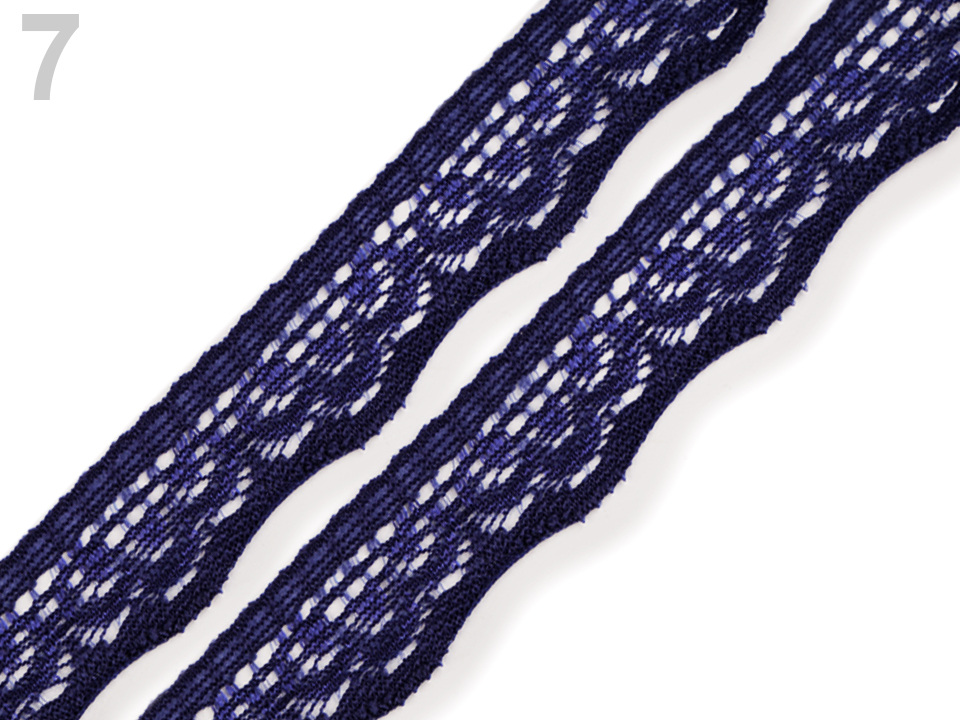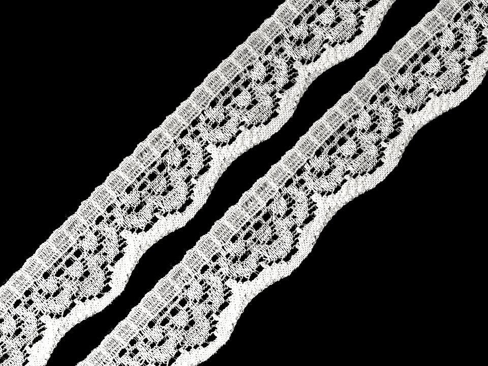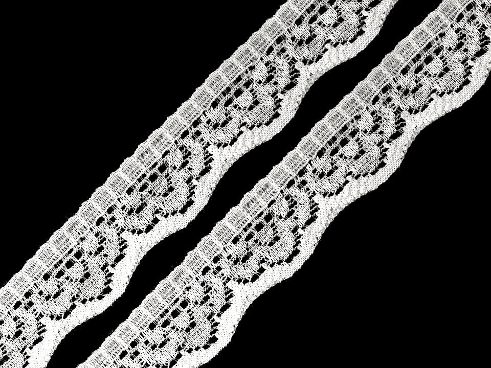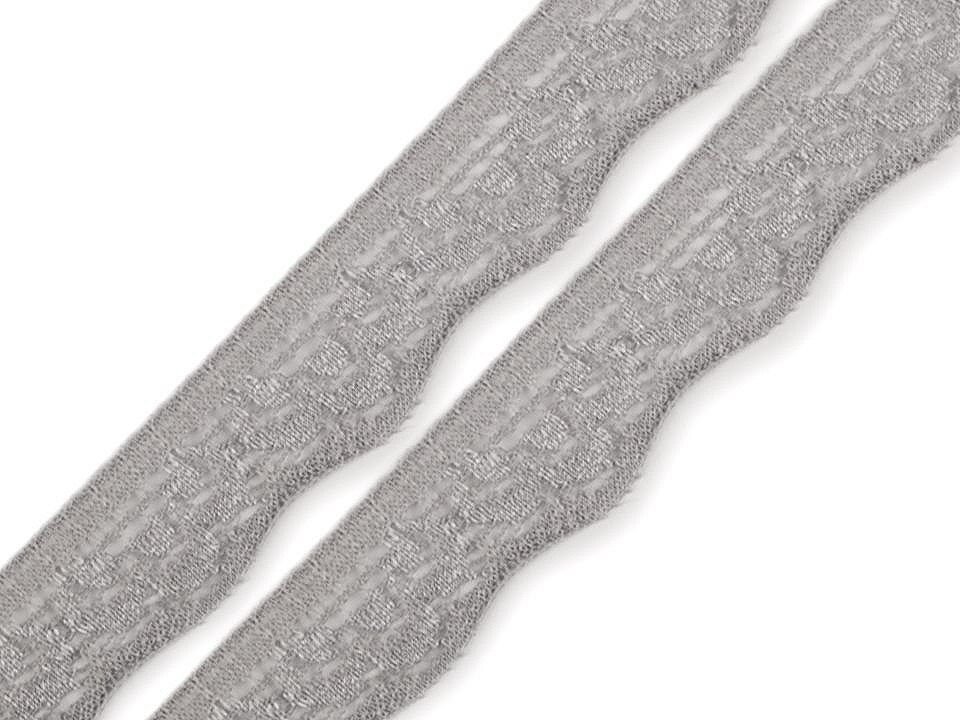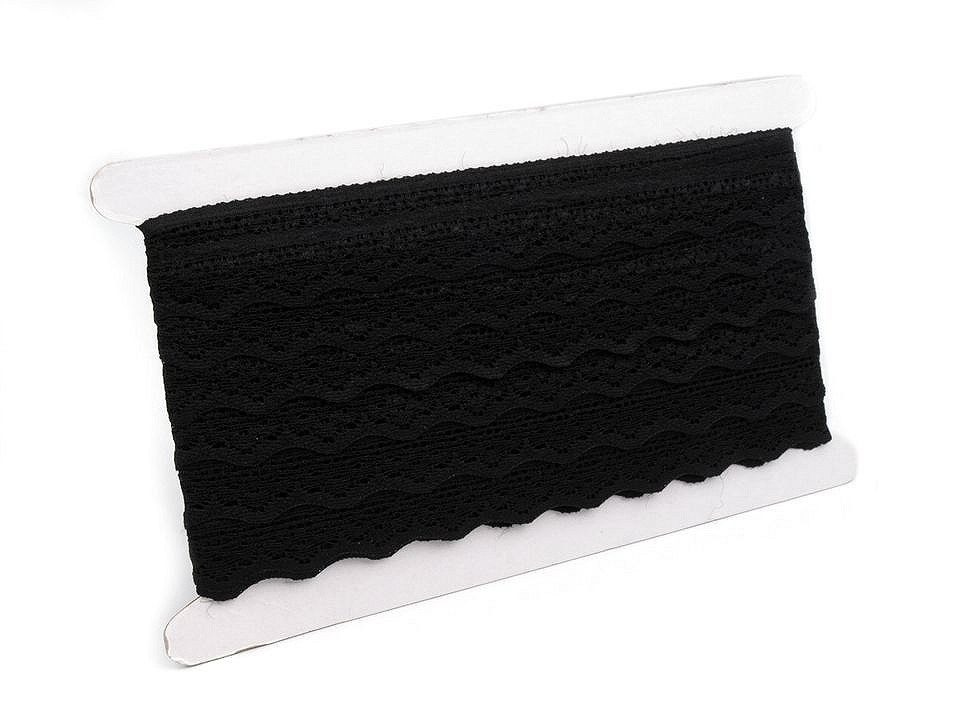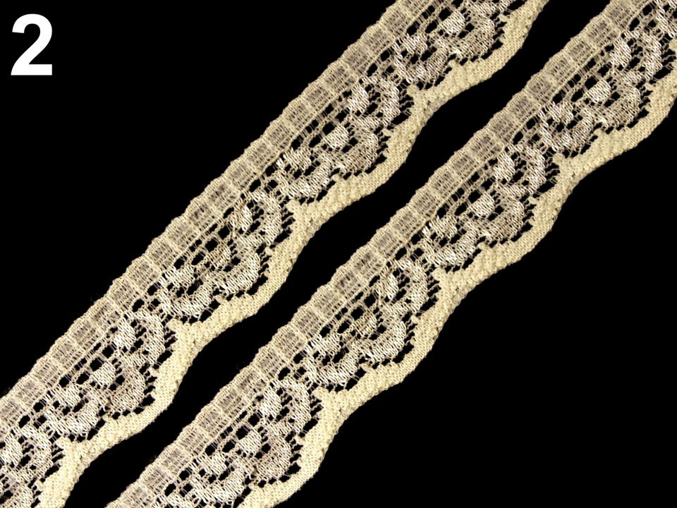 Jemná krajka se zajímavým designem je pružná a zakončují ji pravidelné vlnky.