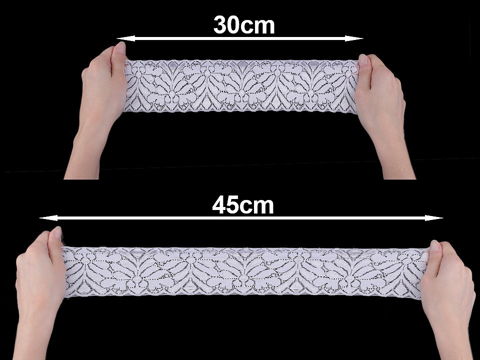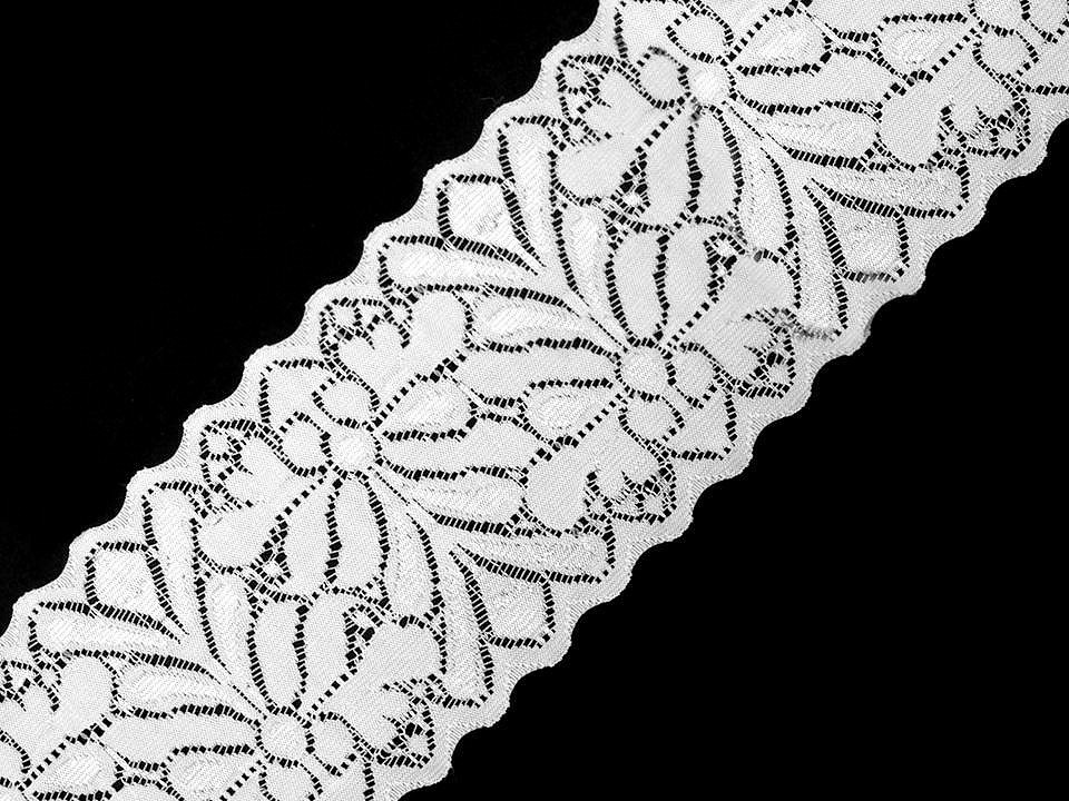 Použití: Díky vysoké elasticitě je krajka vhodná na ozdobení spodního prádla, punčoch, halenek, šatů apod.