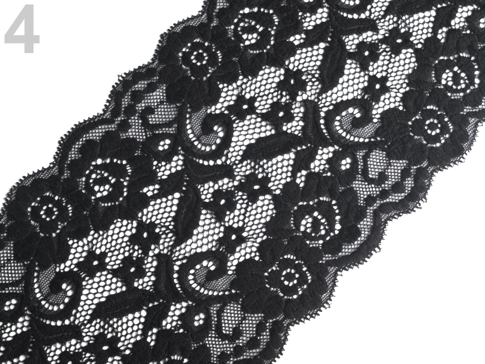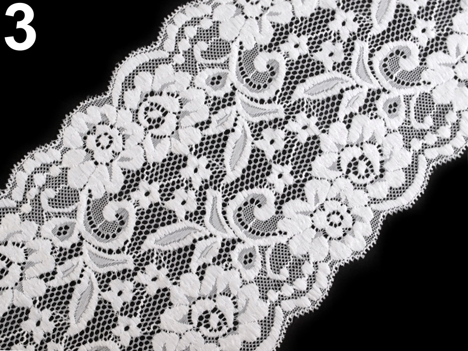 Široká elastická krajka působí luxusně. Její květinový vzor je kvalitně propracovaný a na obou stranách ho lemují jemné obloučky.