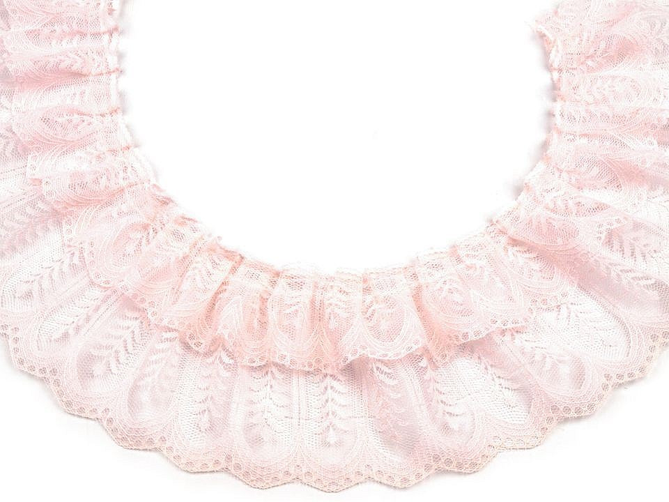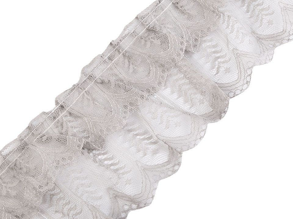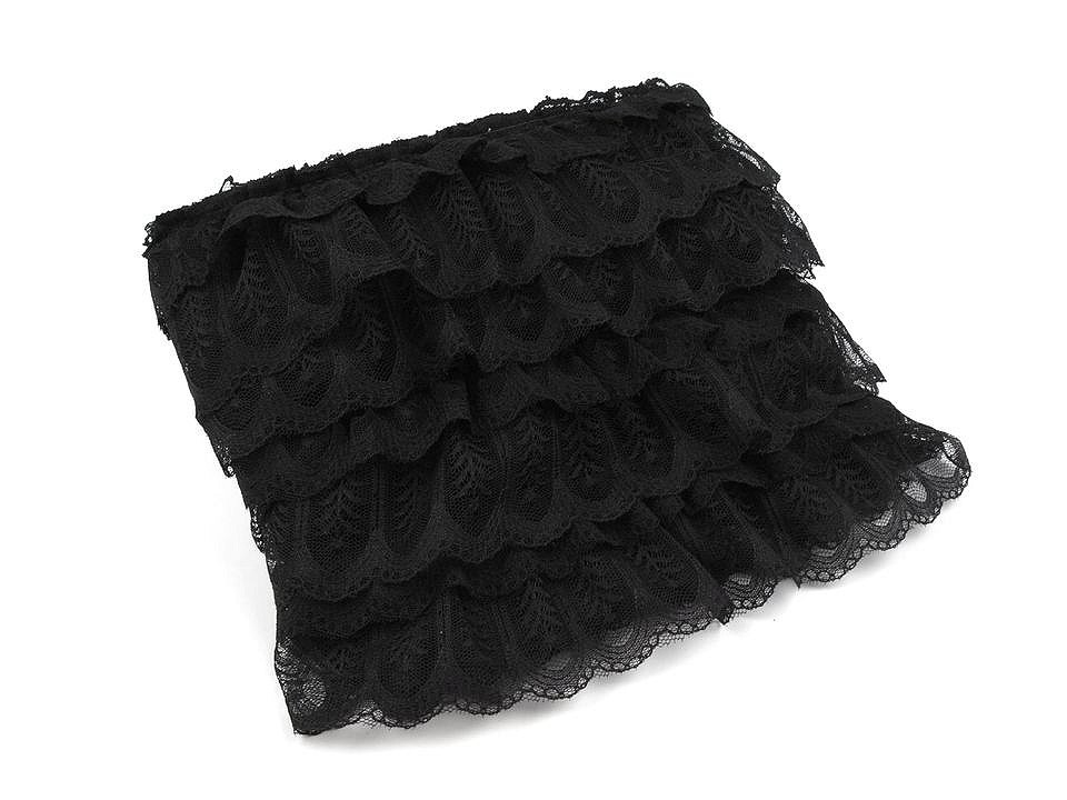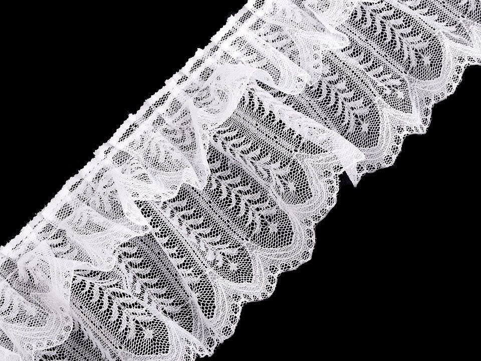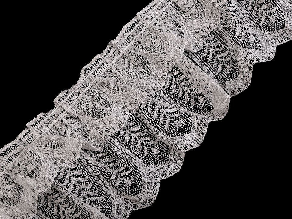 Použití: Řasenou krajku oceníte při zdobení oděvů. Můžete dát originální nádech svým halenkám, sukním nebo šatům. Je vhodná také jako dekorace bytových doplňků, například polštářů či závěsů.