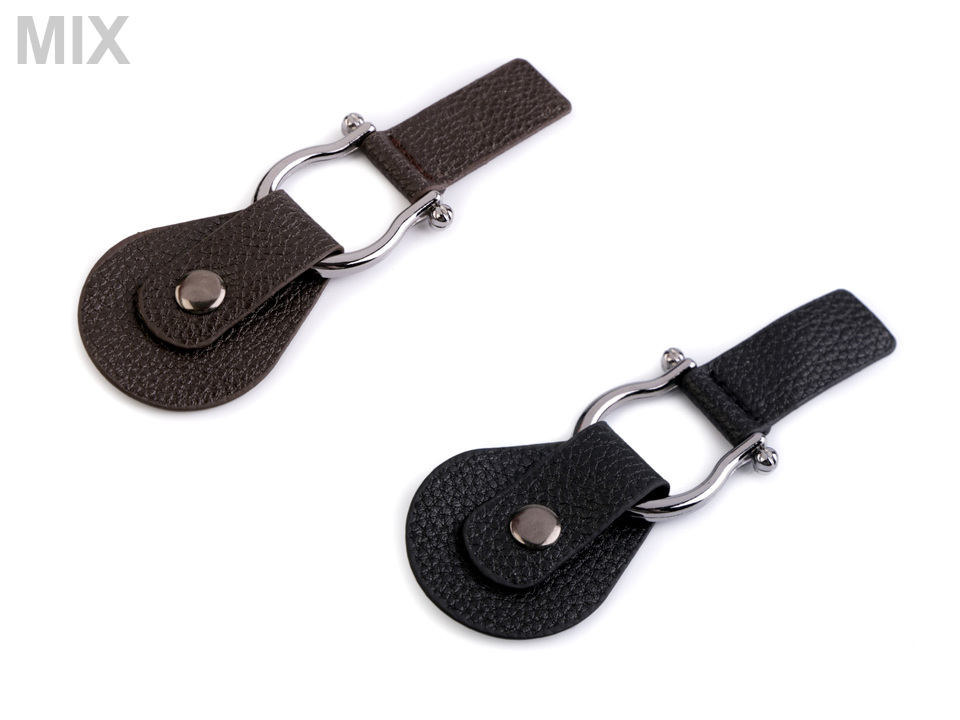Elegantní zapínání, vyrobené z kovu a eko kůže, se skládá ze dvou částí, které se přišívají na látku. Kulatá spona je z nemagnetického kovu, patentka z magnetického kovu.