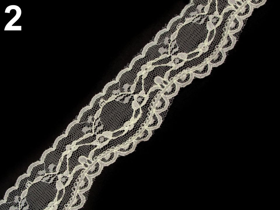 Jemná krajka působí velmi romanticky. Její spodní stranu zakončuje vlnkovaný okraj. Krajka je pevná, není pružná.
