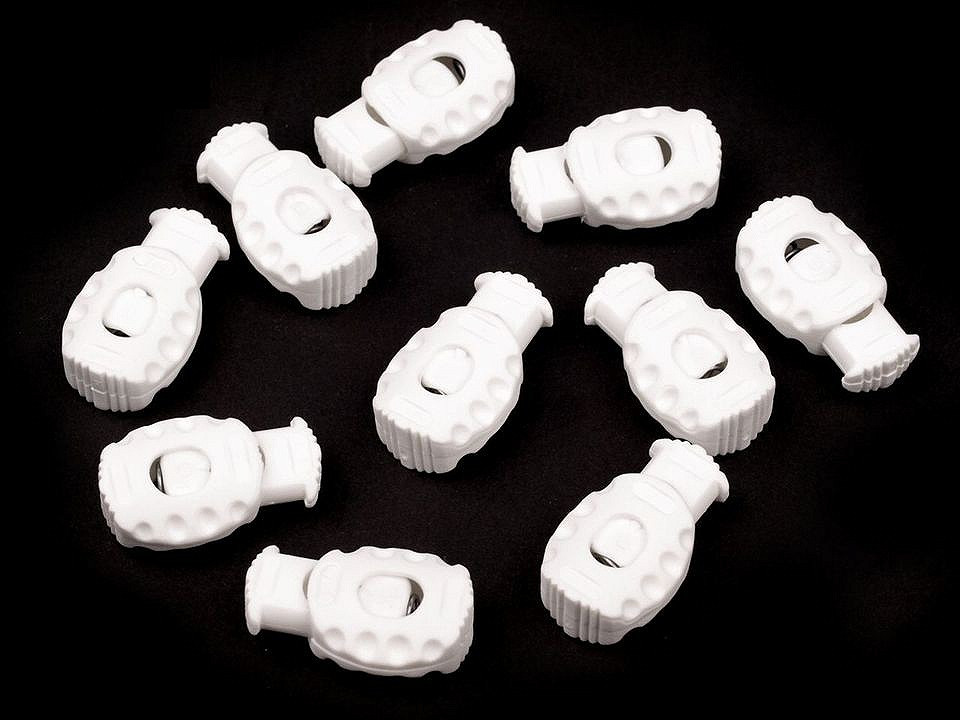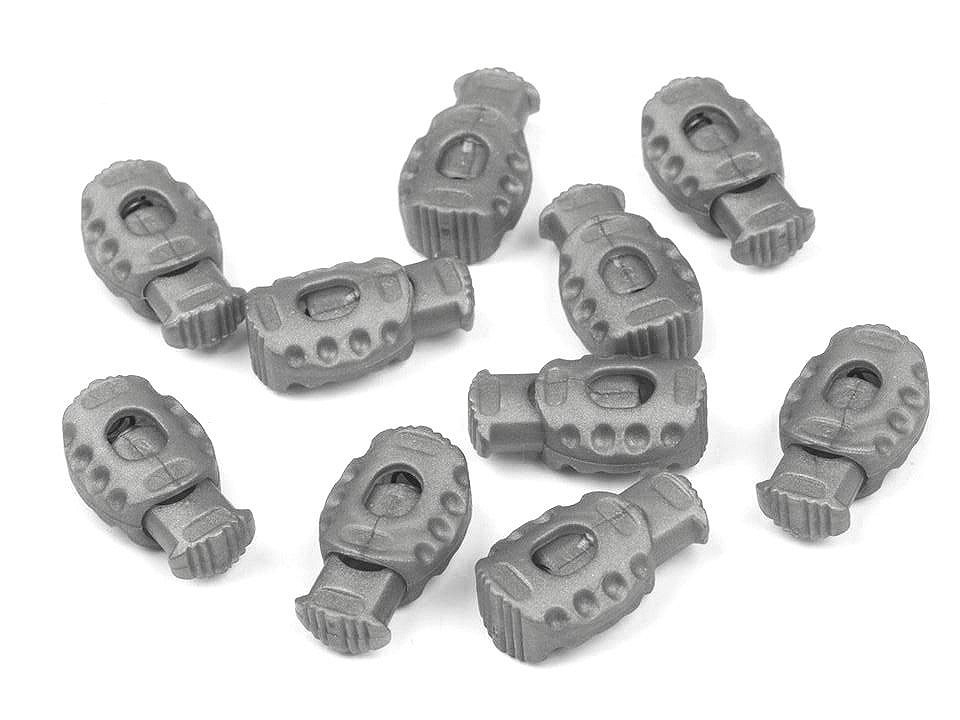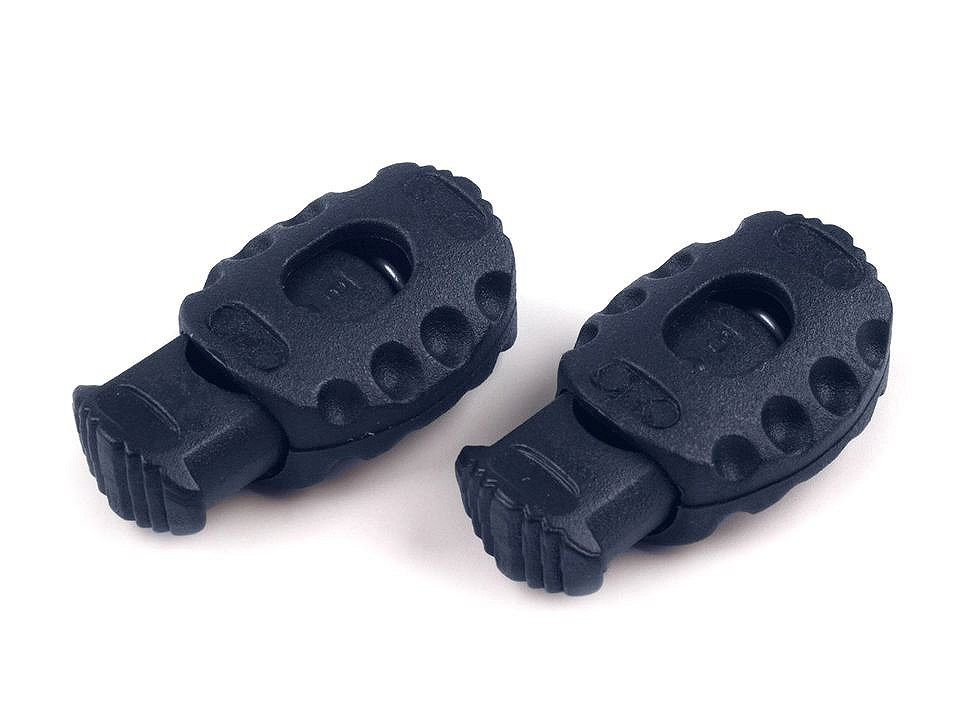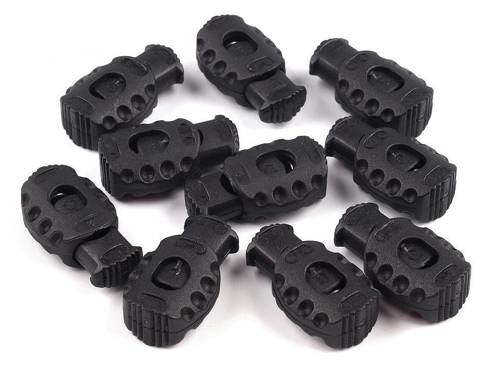 Brzda se používá jako součást oděvů a bund pro efektní ukončení šňůrek. Uvnitř brzdičky je strunka která zajišťuje pevnější uchycení. Rozměr brzdy 20 x 30 mm, průvlekové dírky 6 x 8 mm.