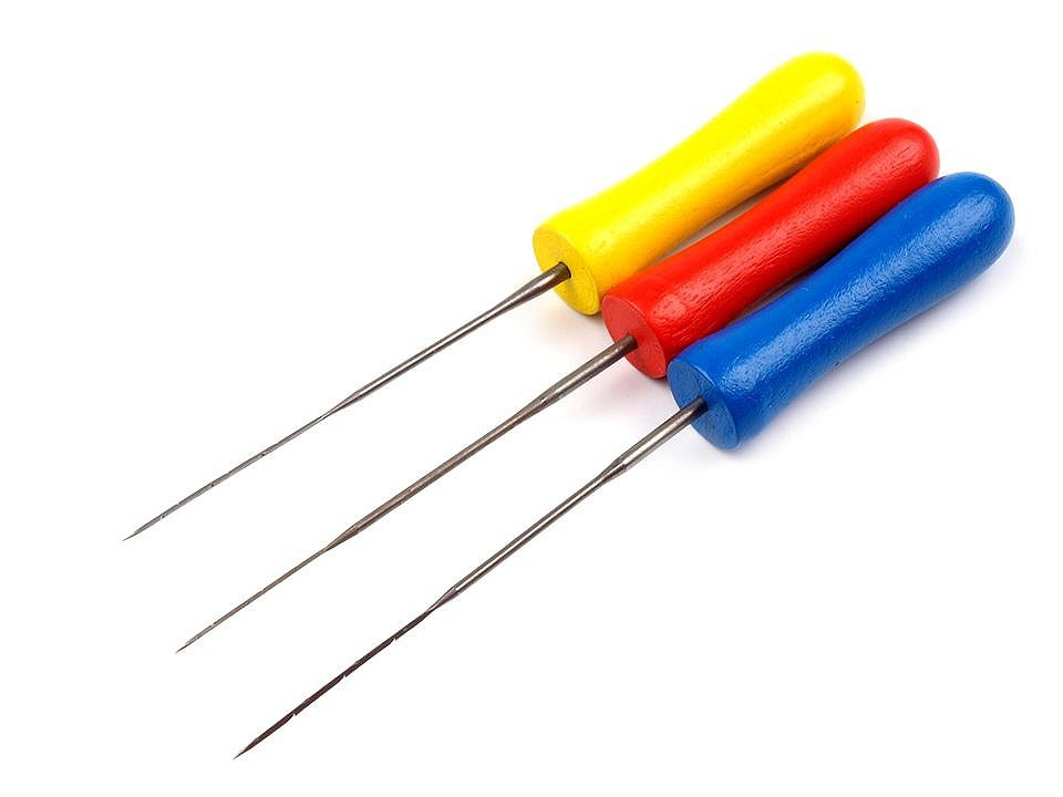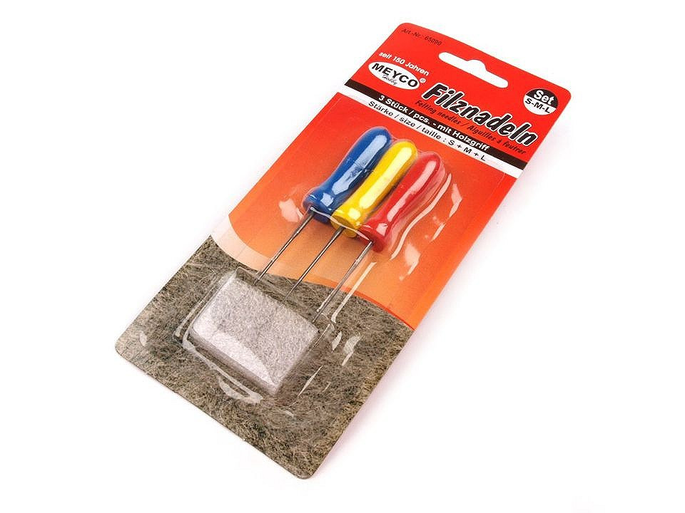 Na jedné kartě jsou 3 jehly různých velikostí: S, M a L. Silná jehla L se používá na začátku tvoření, tenkou jehlou S se dodělávají detaily. Mají pohodlné uchopení díky dřevěné rukojeti.